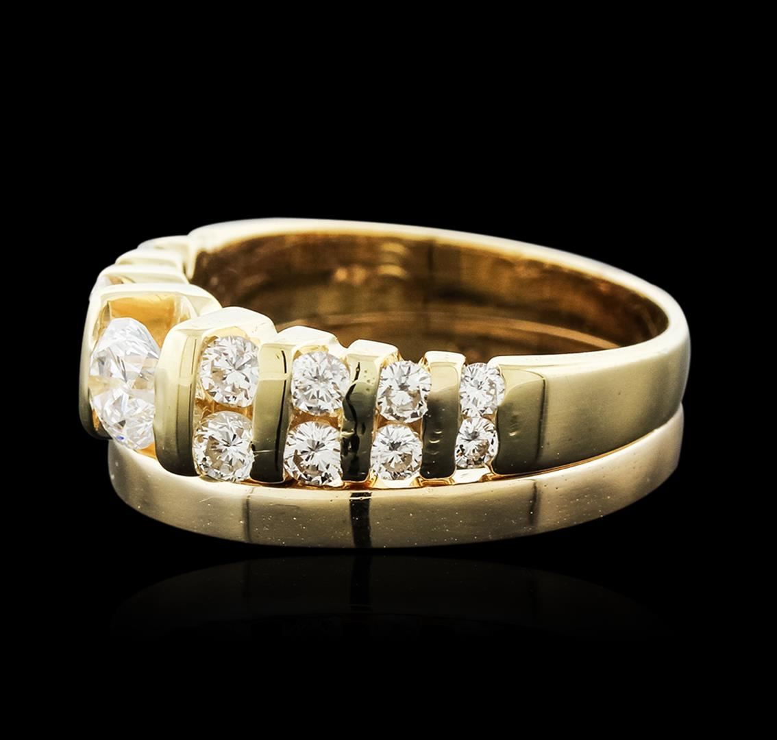 One ring featuring: 14KT yellow gold weighing 7.31 grams containing one round diamond center weighing 0.36ct and sixteen round cut diamonds weighing a total of 0.66ct.