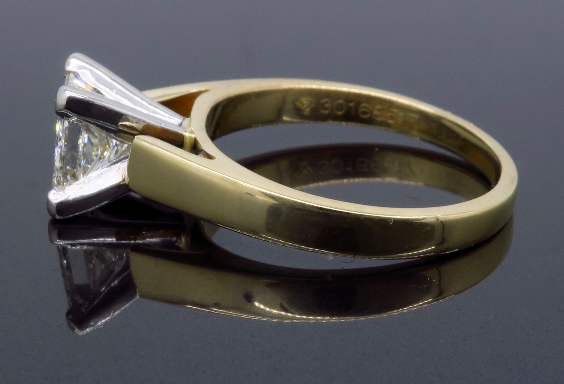 One 14KT Yellow Gold 1.02ct Princess Cut Diamond Ring. (1) Princess cut Diamond with a total weight of 1.02cts with a color of I and clarity of SI-2. Total weight of this ring is 4.0 grams.