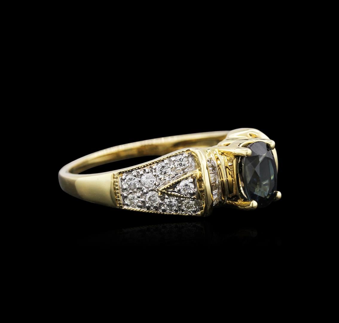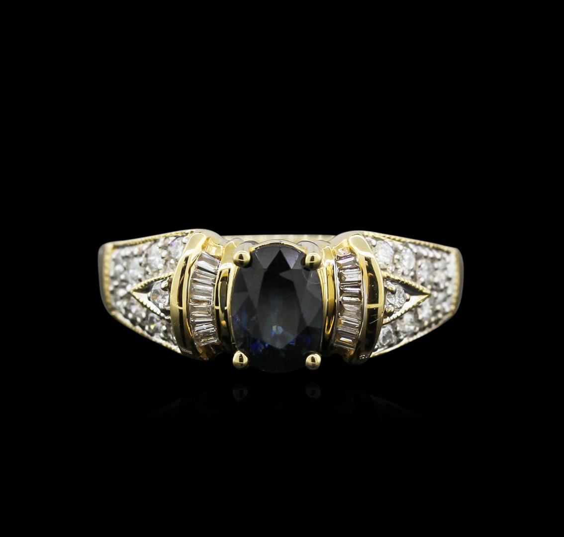 One ring featuring: 14KT yellow gold weighing 3.09 grams containing one sapphire center stone with a total weight of 1.02ct and 30 baguette and round diamonds with a total weight of 0.33ct.