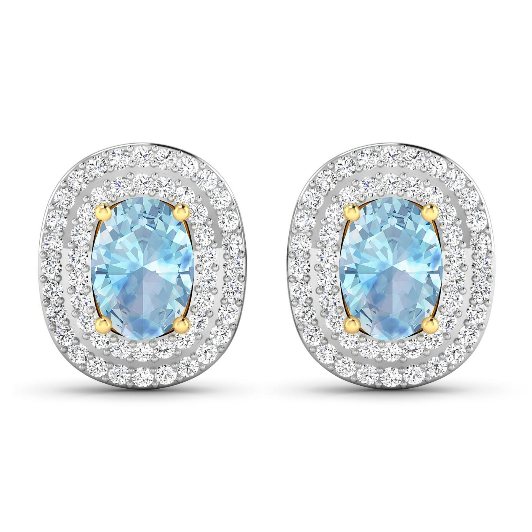 Aquamarine Oval 7x5mm - 2Pcs + White Diamond F/C Round 1.00mm - 100Pcs (I1-I2/I color) ( Push Post ) Total weight of gemstones is 1.02cts. Total Diamond weight is 0.45cts. Total weight of these earrings are 2.69 grams.