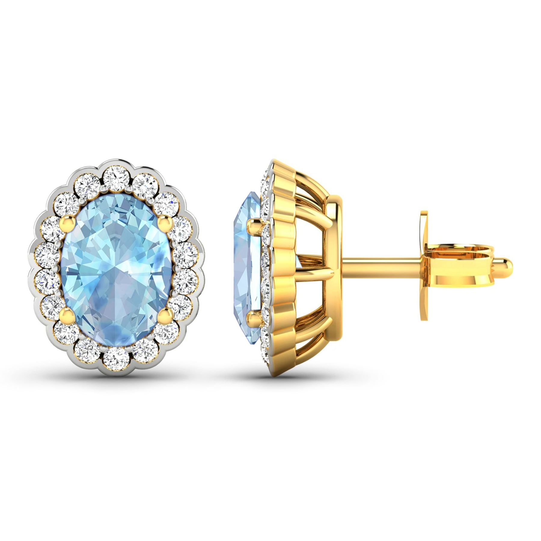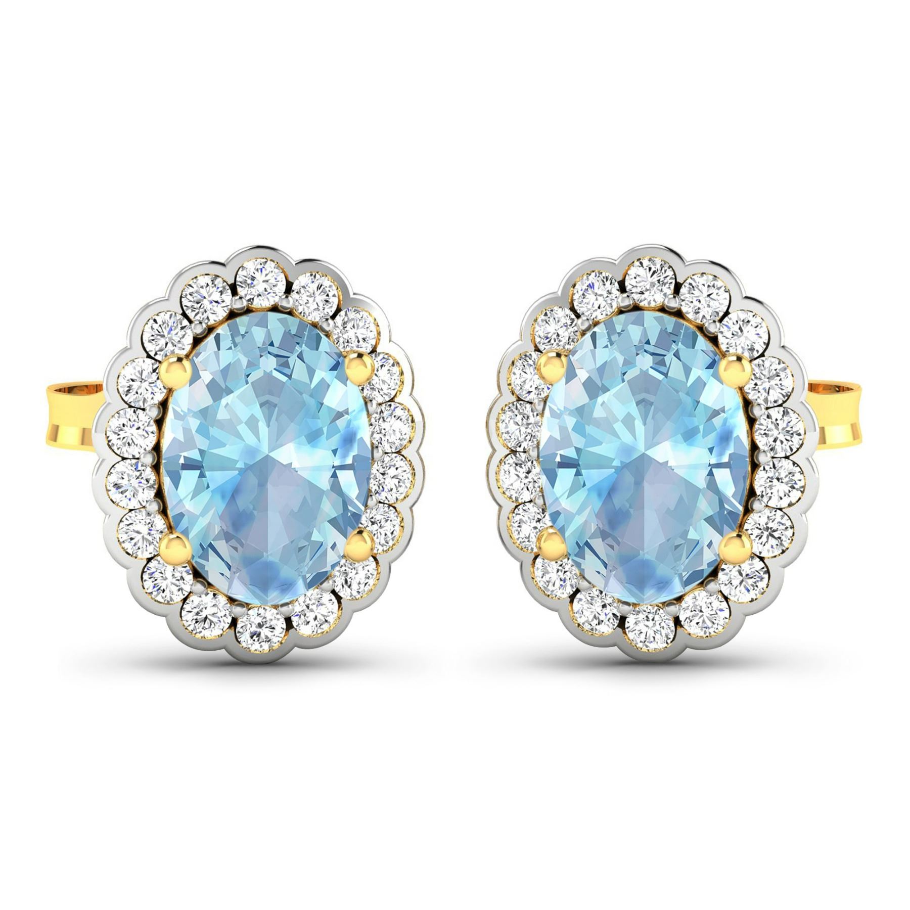 Aquamarine Oval 7x5mm - 2Pcs + White Diamond F/C Round 1.20mm - 36Pcs (I1-I2/I color) ( Push Post ) Total weight of gemstones is 1.02cts. Total Diamond weight is 0.28cts. Total weight of these earrings are 2.47 grams.