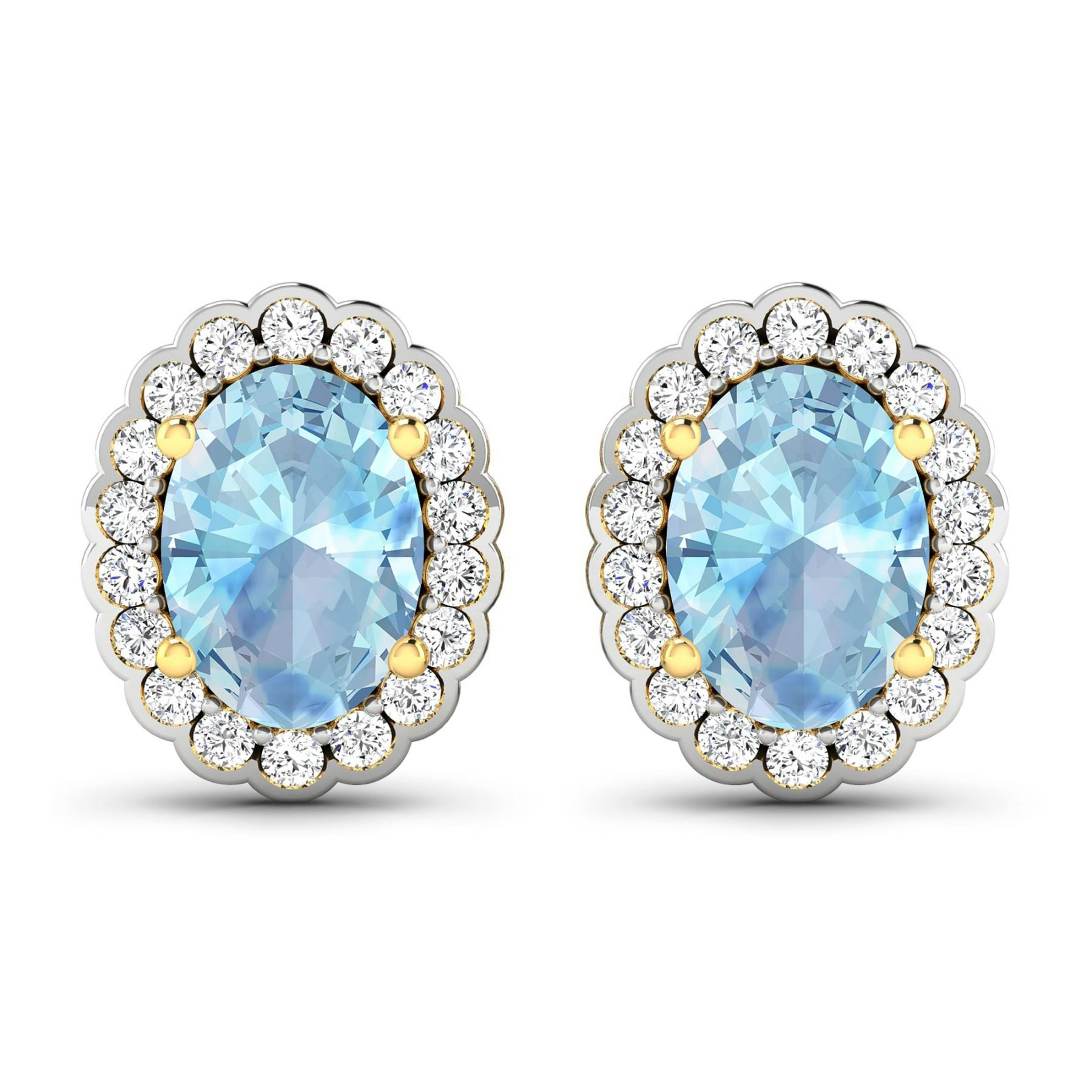 Aquamarine Oval 7x5mm - 2Pcs + White Diamond F/C Round 1.20mm - 36Pcs (I1-I2/I color) ( Push Post ) Total weight of gemstones is 1.02cts. Total Diamond weight is 0.28cts. Total weight of these earrings are 2.47 grams.
