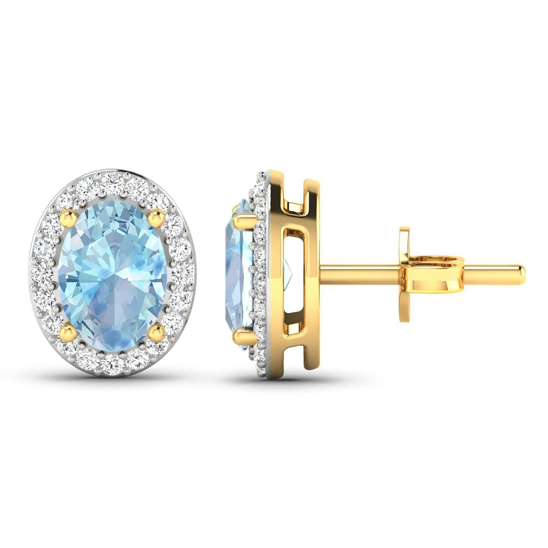 Aquamarine Oval 7x5mm - 2Pcs + White Diamond F/C Round 1.10mm - 40Pcs (I1-I2/I color) ( Push Post ) Total weight of gemstones is 1.02cts. Total Diamond weight is 0.26cts. Total weight of these earrings are 1.98 grams.