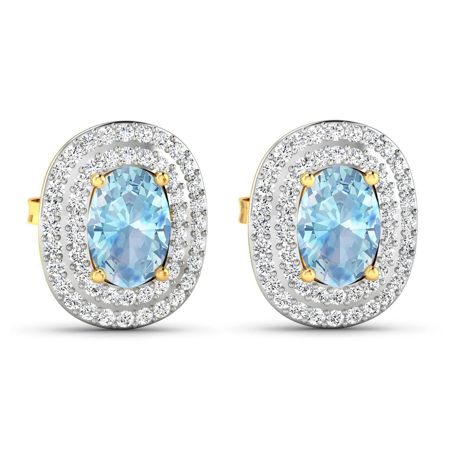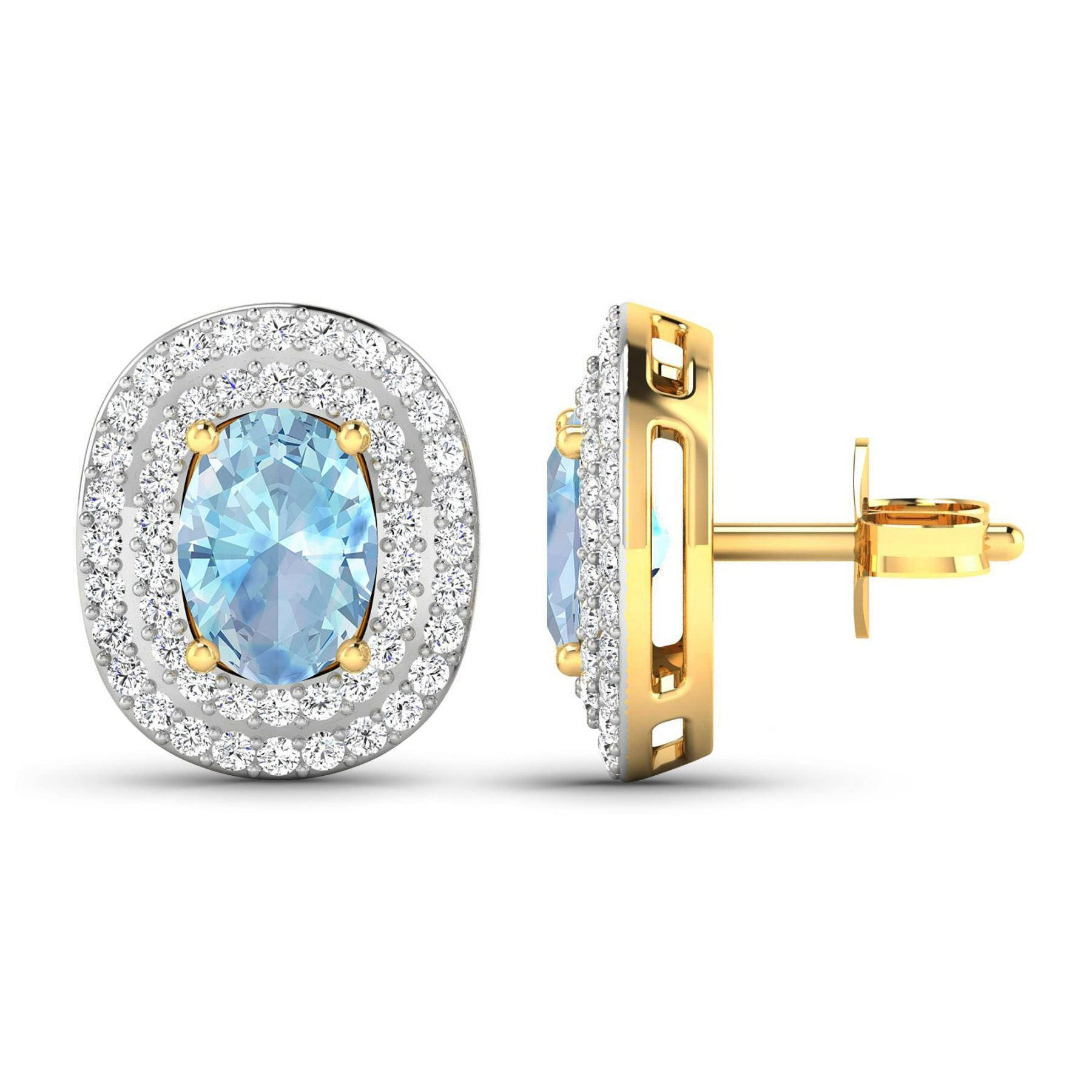 Aquamarine Oval 7x5mm - 2Pcs + White Diamond F/C Round 1.00mm - 100Pcs (I1-I2/I color) ( Push Post ) Total weight of gemstones is 1.02cts. Total Diamond weight is 0.45cts. Total weight of these earrings are 2.69 grams.