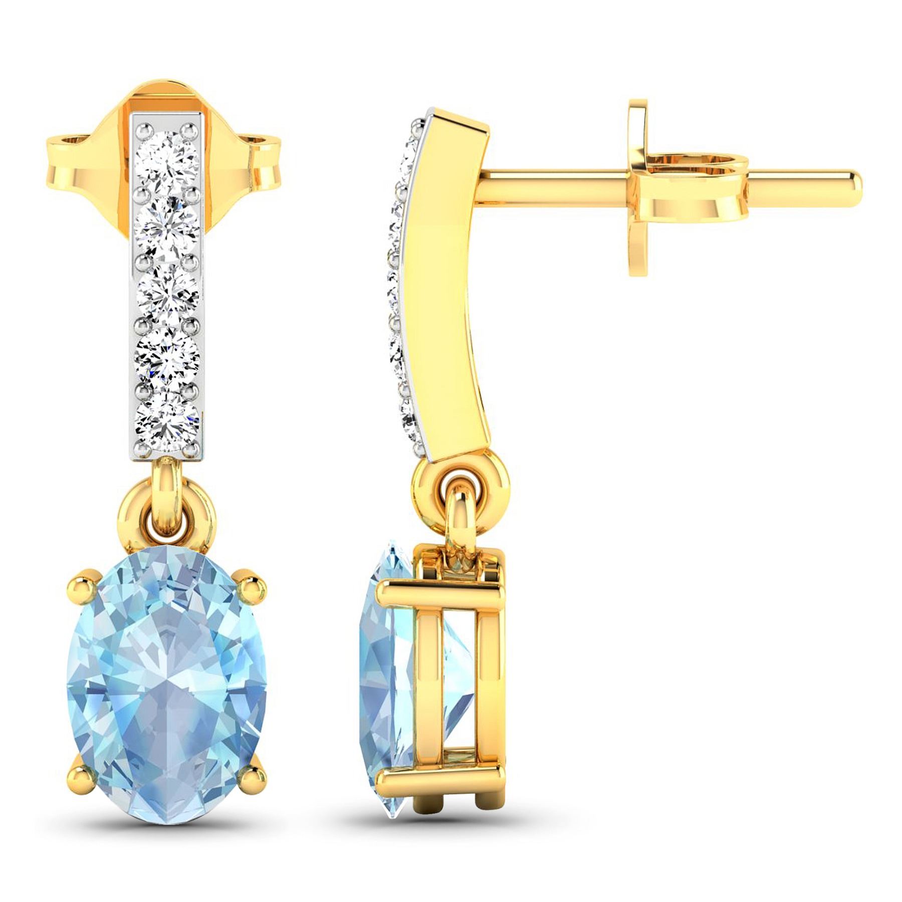 14KT Yellow Gold 1.02ctw Aquamarine and Diamond Earrings