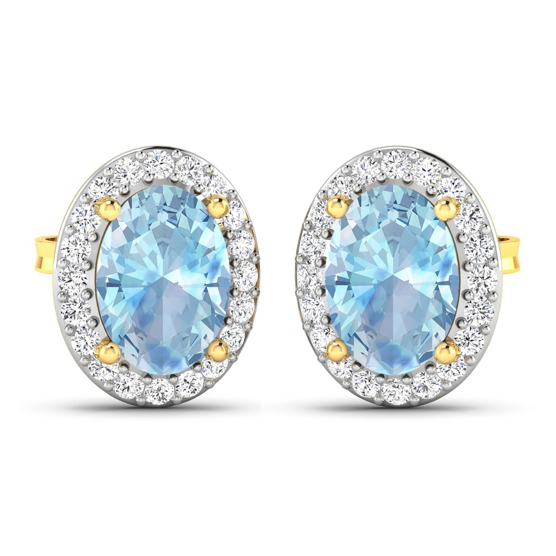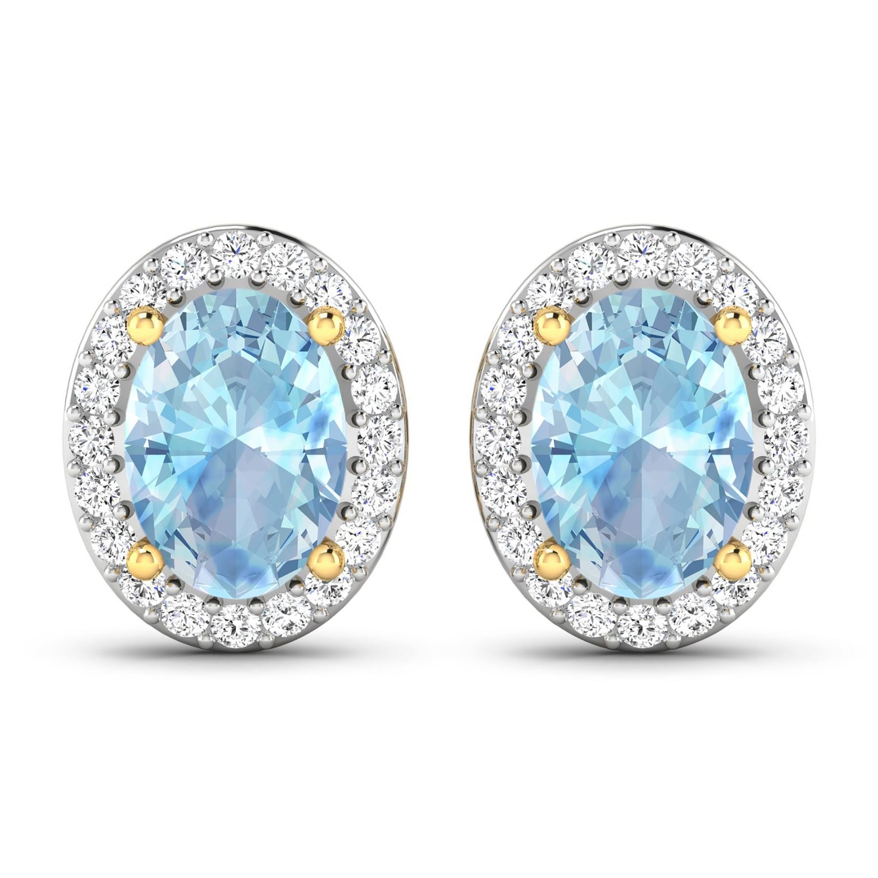 Aquamarine Oval 7x5mm - 2Pcs + White Diamond F/C Round 1.10mm - 40Pcs (I1-I2/I color) ( Push Post ) Total weight of gemstones is 1.02cts. Total Diamond weight is 0.26cts. Total weight of these earrings are 1.98 grams.