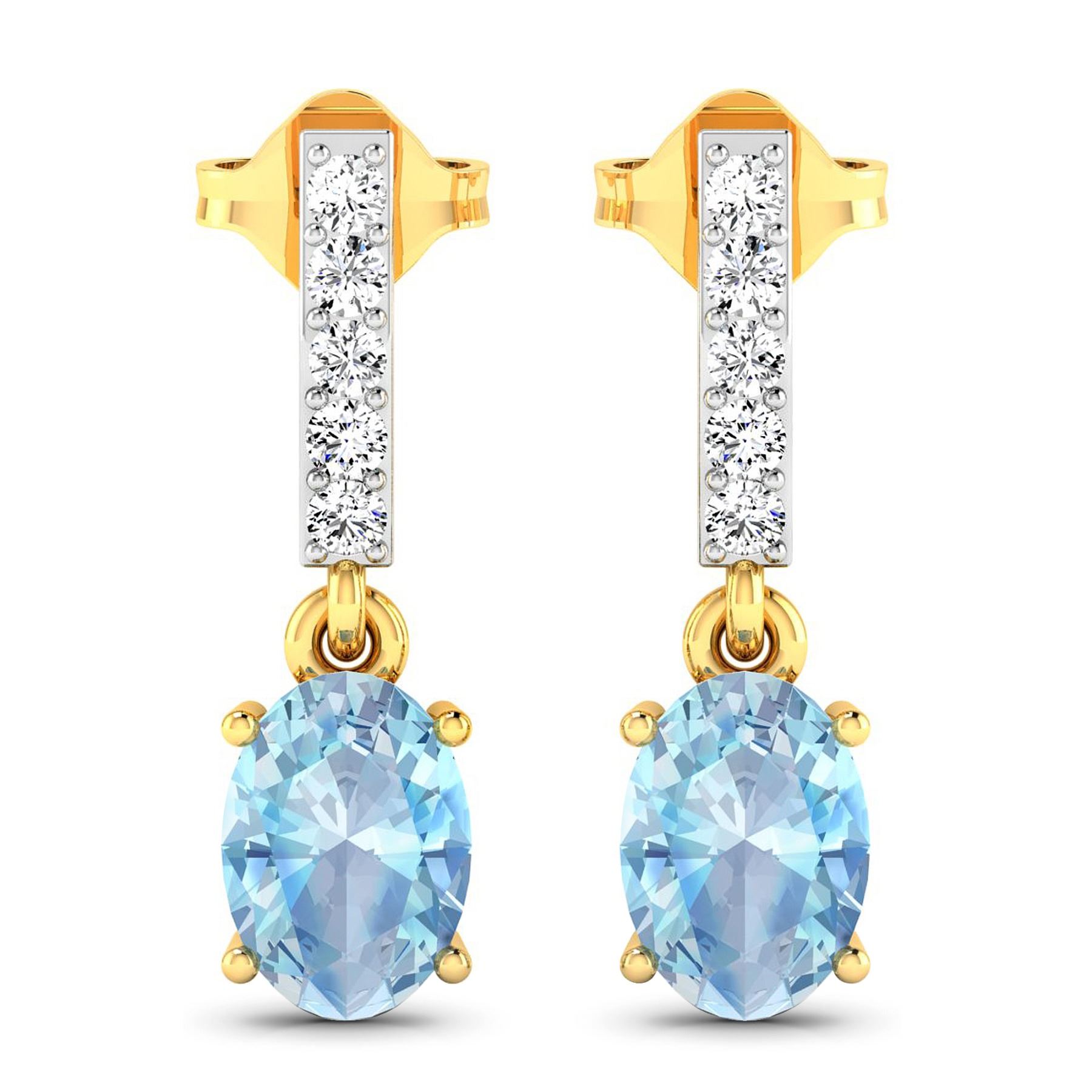 14KT Yellow Gold 1.02ctw Aquamarine and Diamond Earrings