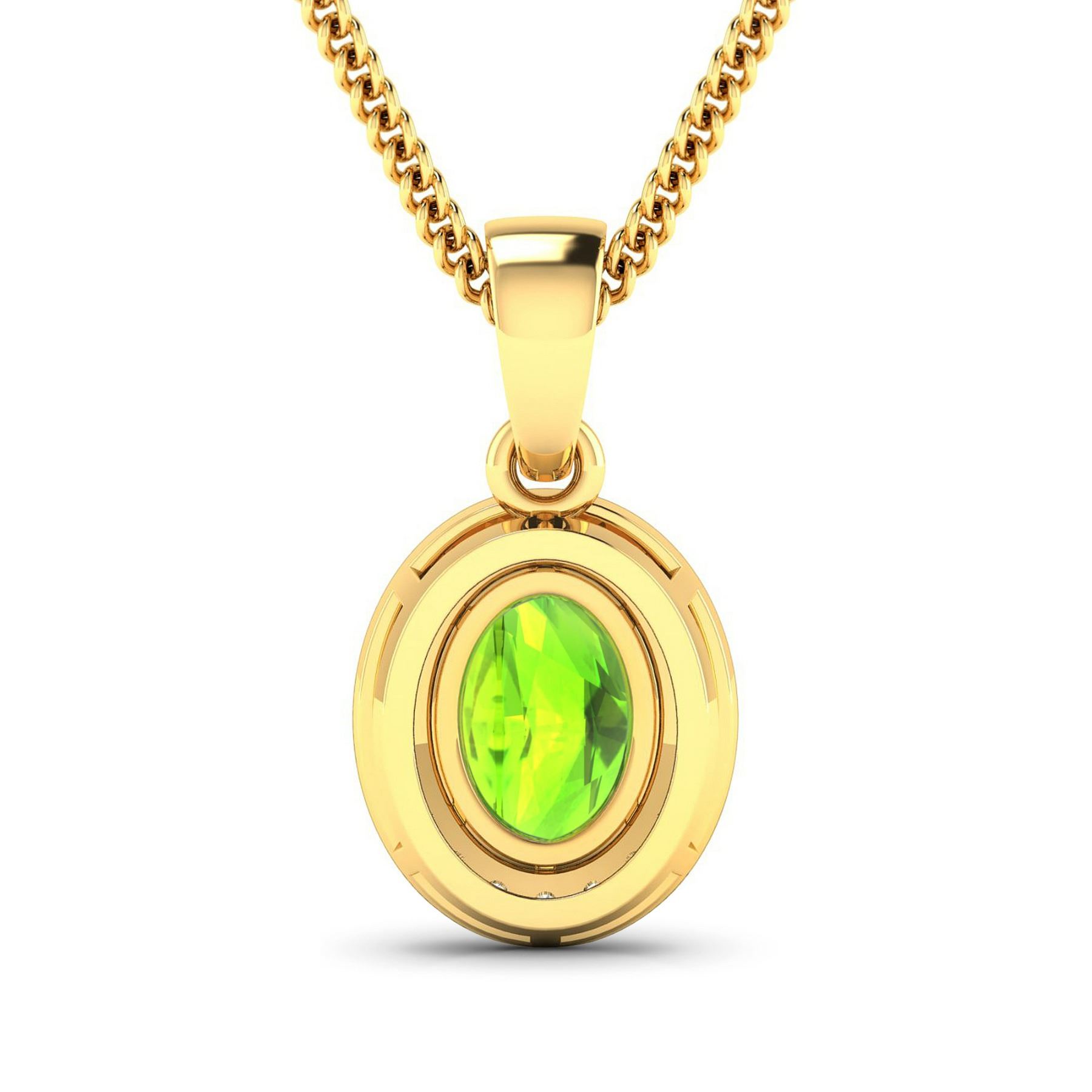 1 Peridot stone with a total weight of 1.05cts. Peridot Oval 8x6mm - 1Pc + White Diamond F/C Round 1.20mm - 22Pcs + White Diamond F/C Round 1.10mm - 1Pc ( I1-I2/I color ). Diamonds with a total weight of 0.18cts. Total weight of pendant with chain is 1.63 grams. 16 inch chain.