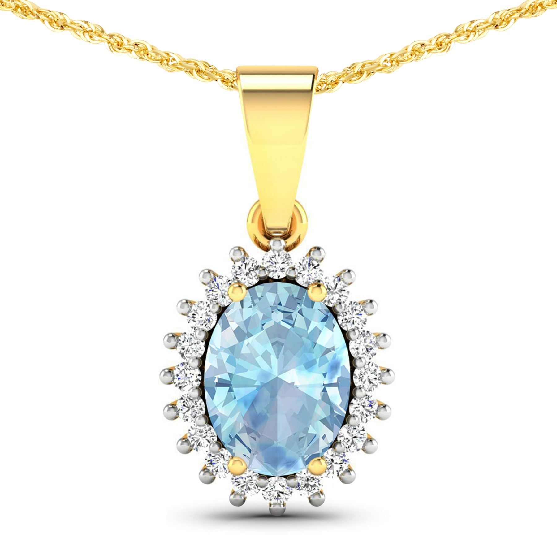 Aquamarine Oval 8x6mm - 1Pc + White Diamond F/C Round 1.10mm - 20Pcs (I1-I2/I color) Total weight of gemstone is 1.05cts. Total Diamond weight is 0.13cts. Total weight of this pendant is 1.69 grams.