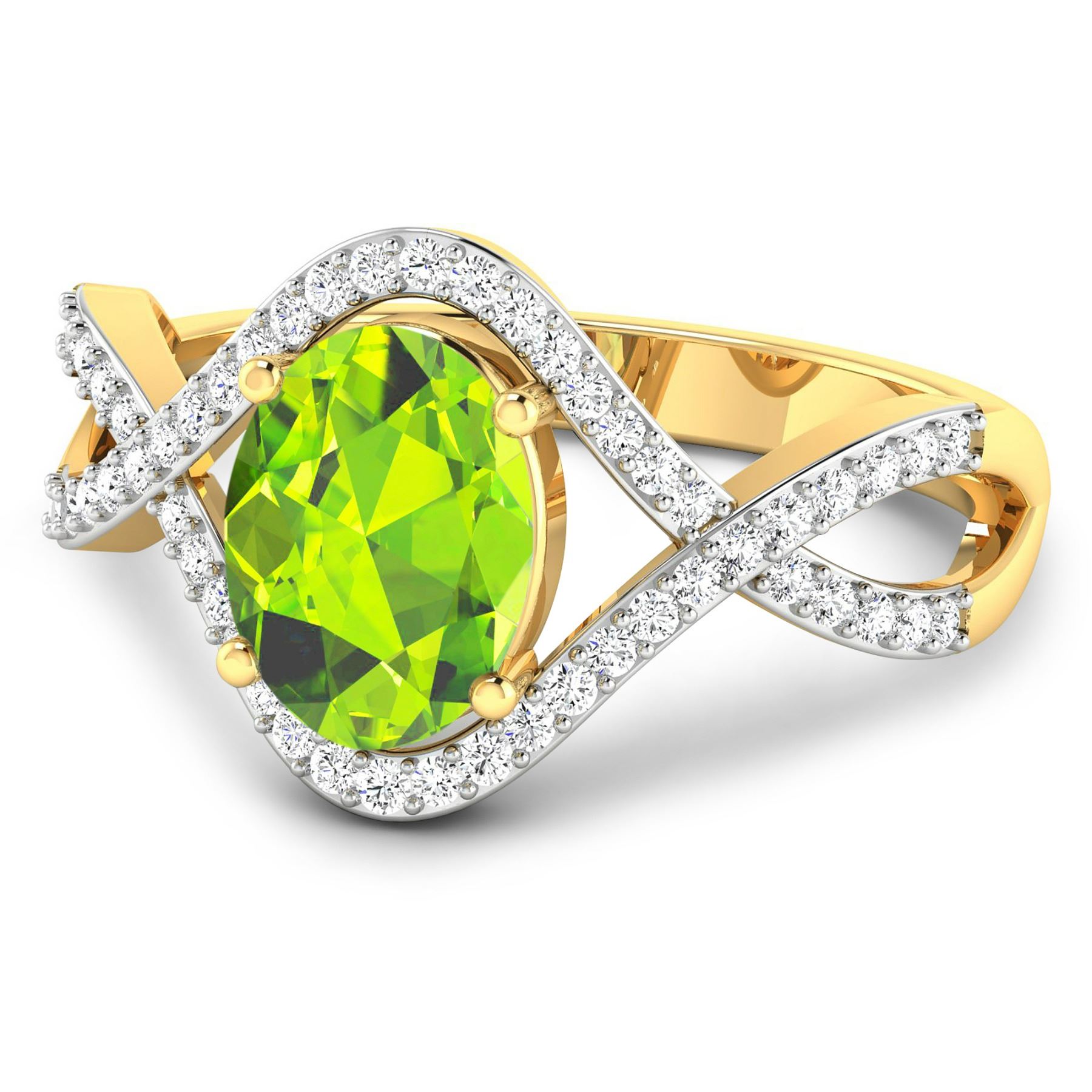 Peridot Oval 8x6mm - 1Pc + White Diamond F/C Round 1.00mm - 52Pcs ( White Pan Rhodium ) ( I1-I2/I color ) Total weight of gemstone is 1.05cts. Total Diamond weight is 0.24cts. Total weight of this ring is 2.77 grams. Ring size 7.