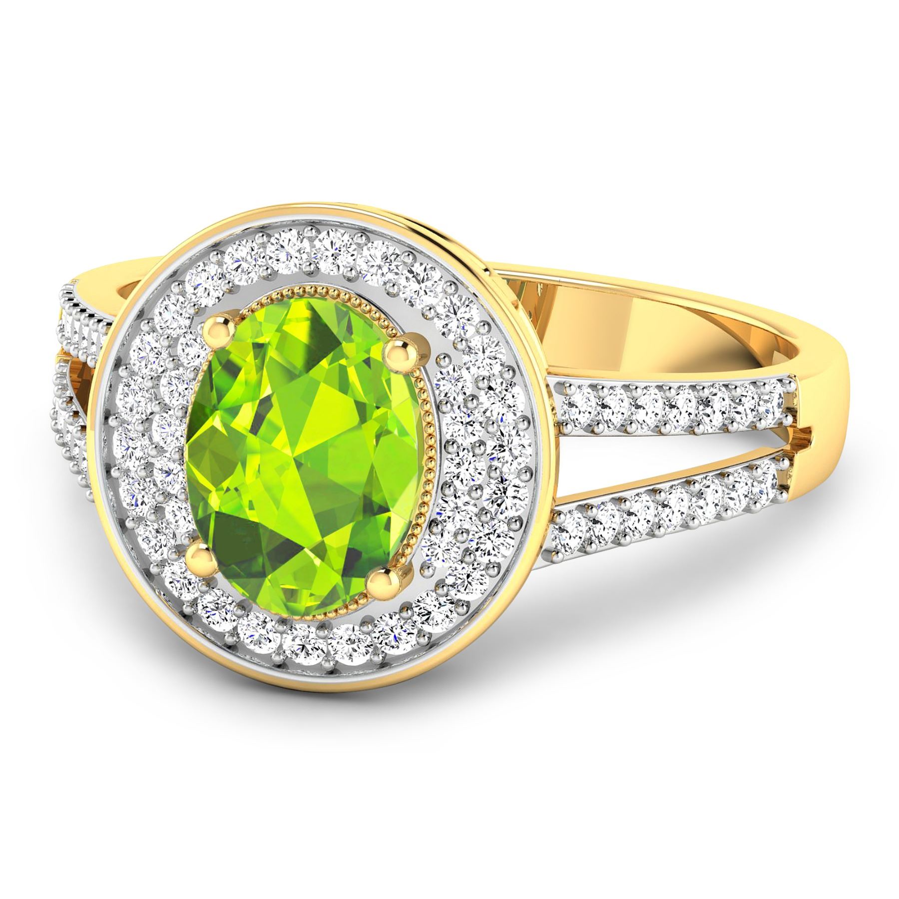 Peridot Oval 8x6mm - 1Pc + White Diamond F/C Round 1.10mm - 24Pcs + White Diamond F/C Round 1.00mm - 40Pcs ( White Pan Rhodium ) ( I1-I2/I color ) Total weight of gemstone is 1.05cts. Total Diamond weight is 0.34cts. Total weight of this ring is 2.95 grams. Ring size 7.