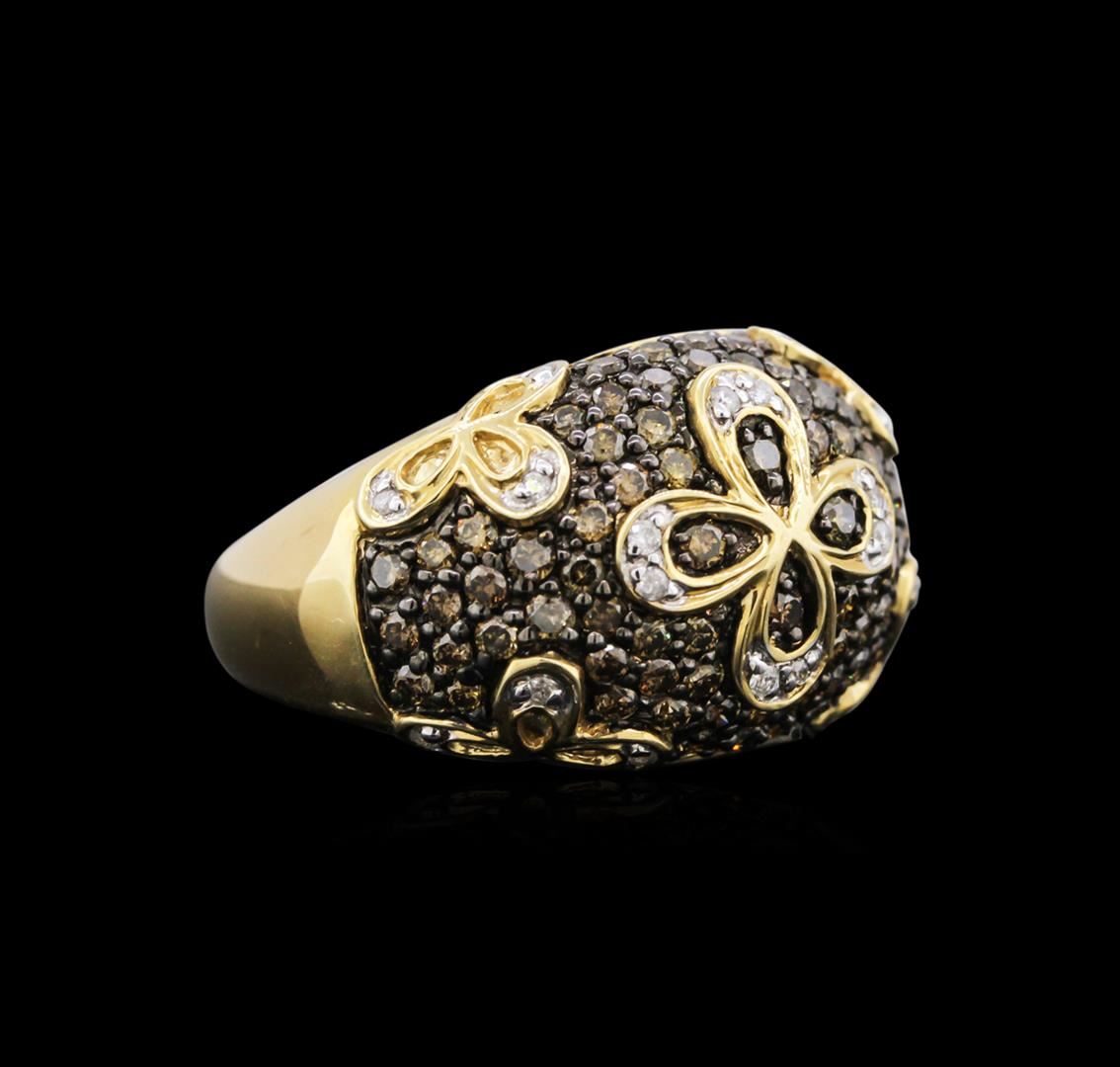 One ring featuring: 14KT yellow gold weighing 5.85 grams containing 74 brown diamonds with a total weight of 1.00ct and 20 round diamonds with a total weight of 0.09ct.