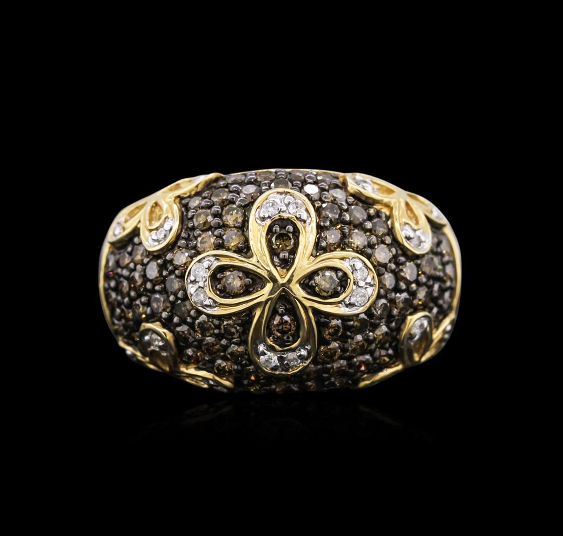 One ring featuring: 14KT yellow gold weighing 5.85 grams containing 74 brown diamonds with a total weight of 1.00ct and 20 round diamonds with a total weight of 0.09ct.