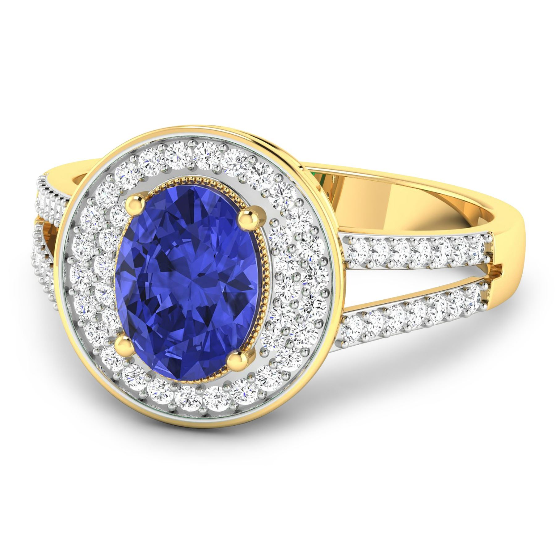 Tanzanite (AA+) Oval 8x6mm - 1Pc + White Diamond F/C Round 1.10mm - 24Pcs + White Diamond F/C Round 1.00mm - 40Pcs ( White Pan Rhodium ) ( I1-I2/I color ) Total weight of gemstone is 1.09cts. Total Diamond weight is 0.34cts. Total weight of this ring is 2.96 grams. Ring size 7.