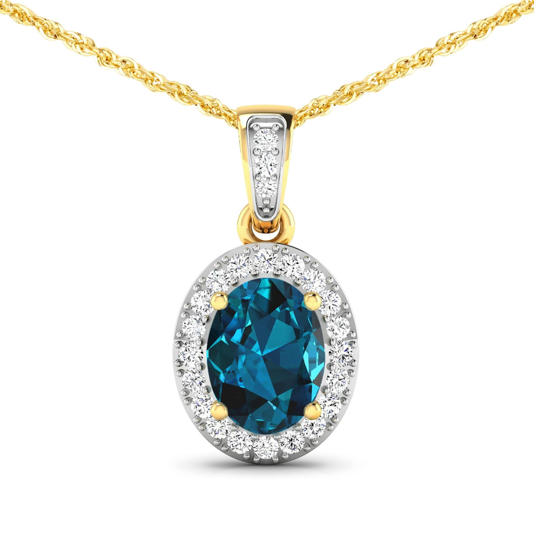 14KT Yellow Gold 1.10ct London Blue Topaz and Diamond Pendant with Chain