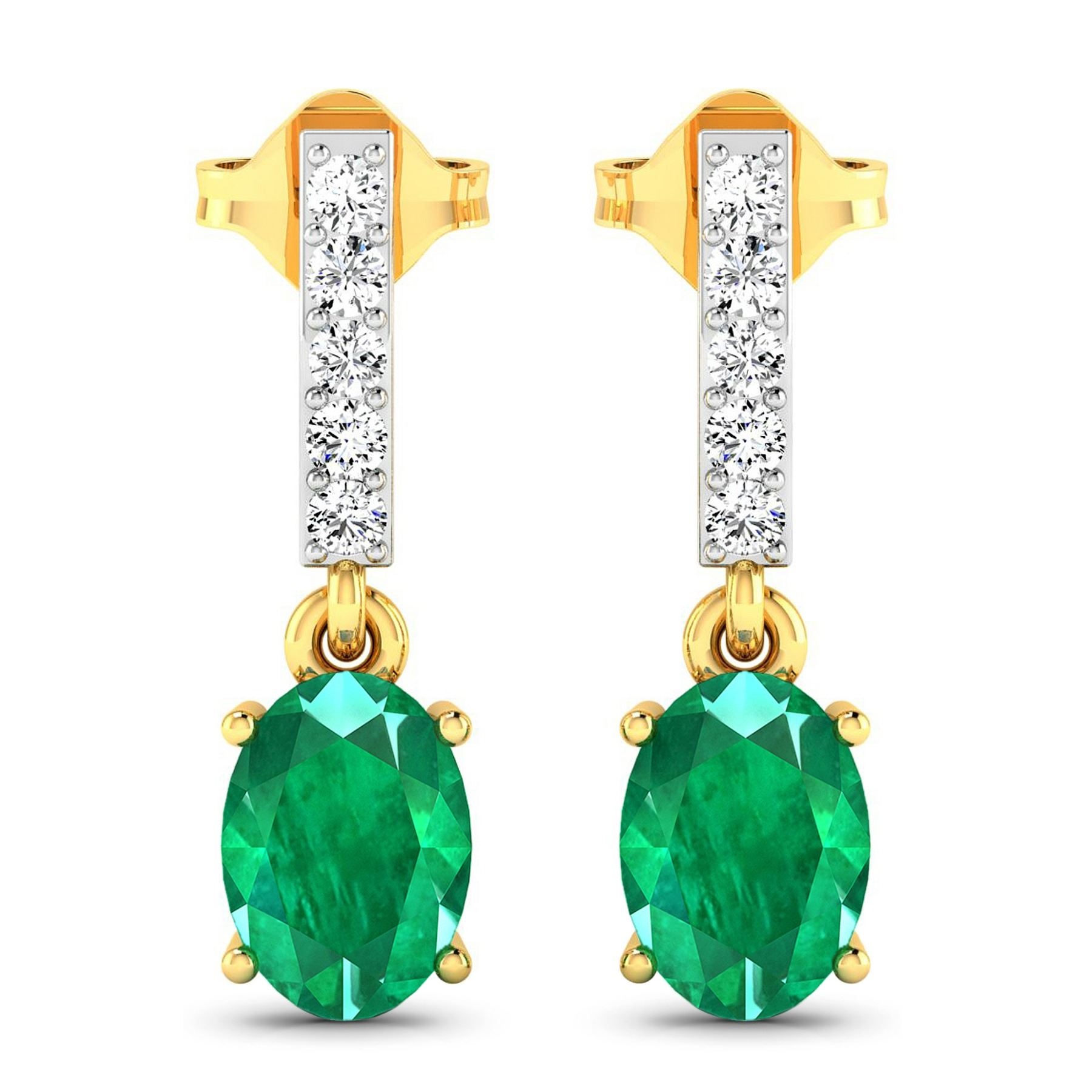 14KT Yellow Gold 1.12ctw Zambian Emerald and Diamond Earrings
