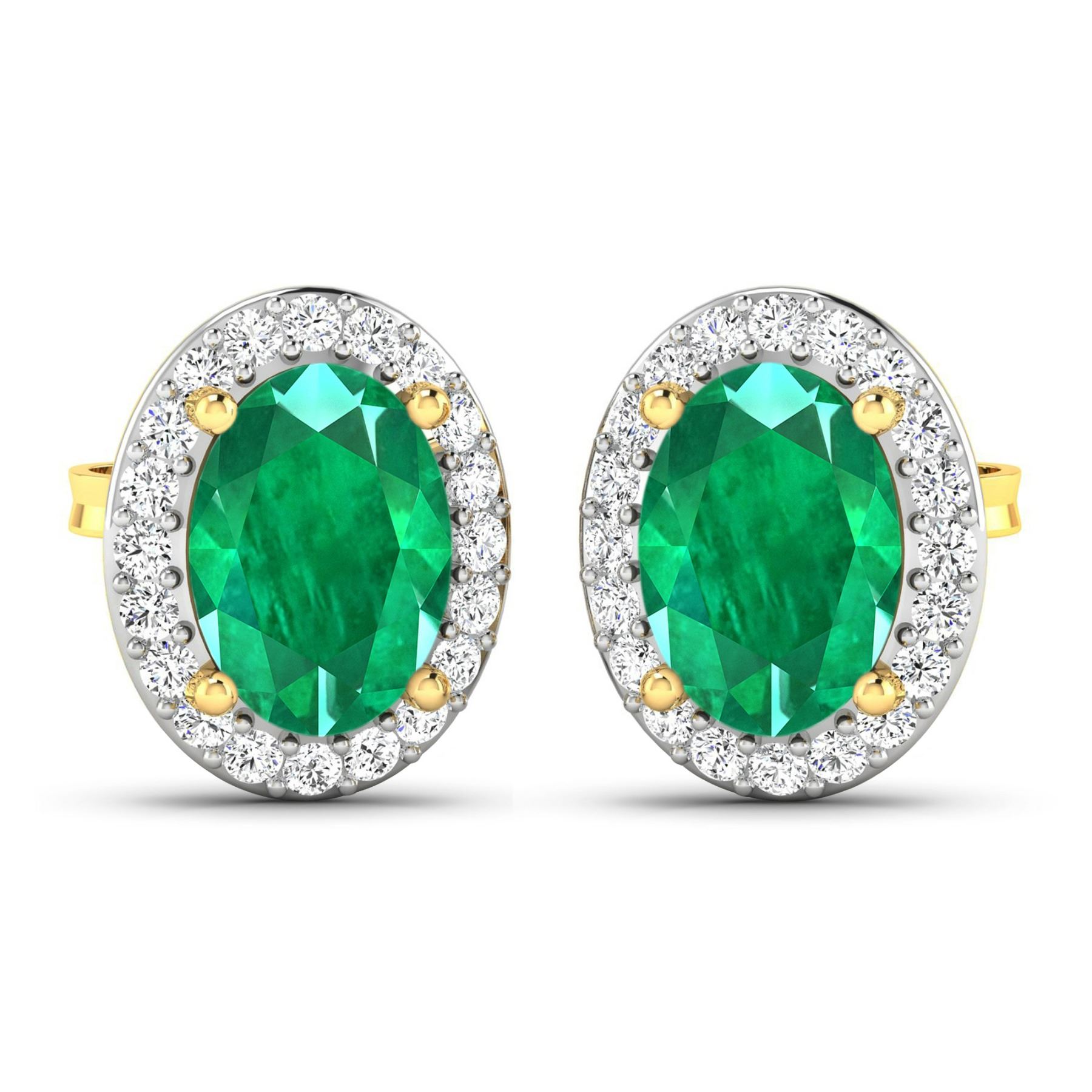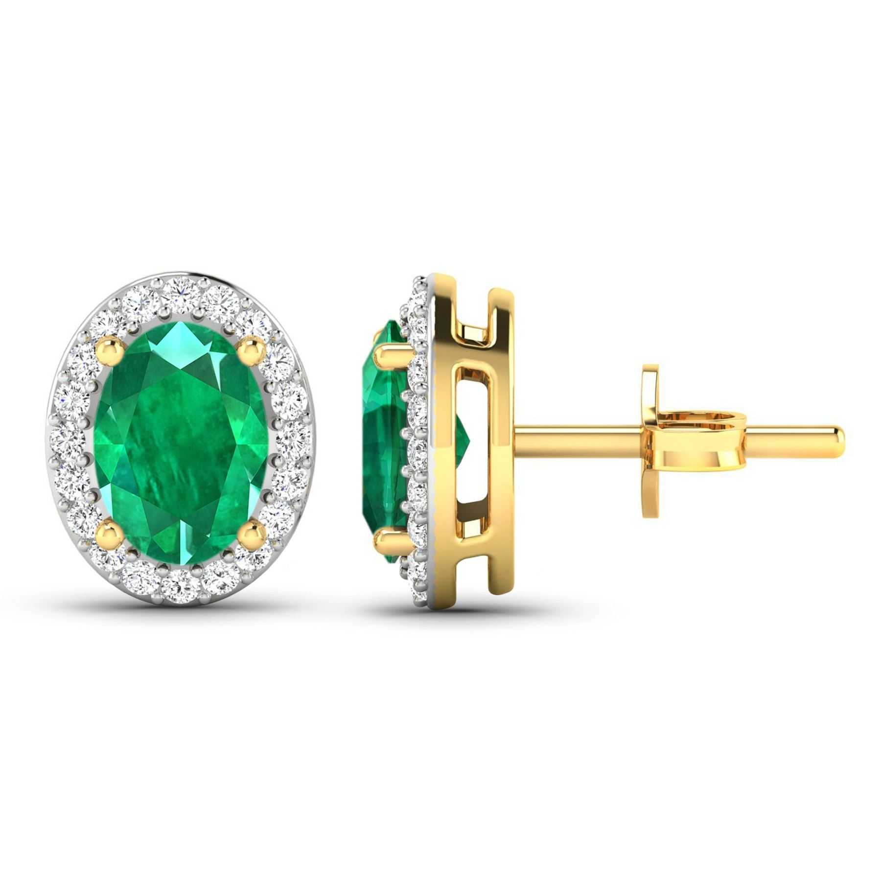 Zambian Emerald (AA) Oval 7x5mm - 2Pcs + White Diamond F/C Round 1.10mm - 40Pcs (I1-I2/I color) ( Push Post ) Total weight of gemstones is 1.12cts. Total Diamond weight is 0.26cts. Total weight of these earrings are 2 grams.