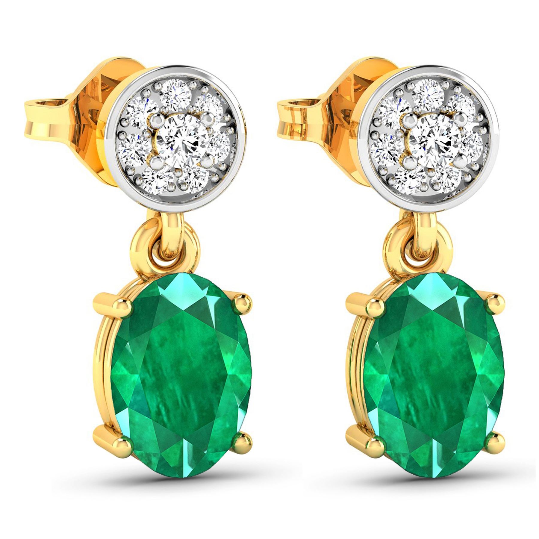 14KT Yellow Gold 1.12ctw Zambian Emerald and Diamond Earrings