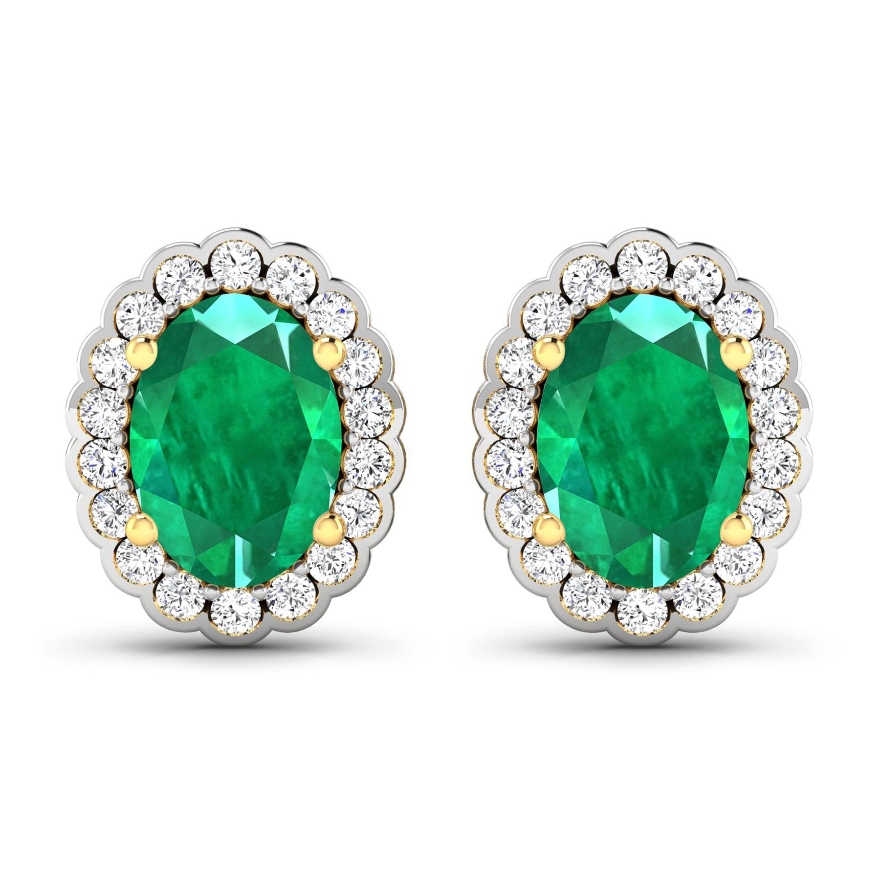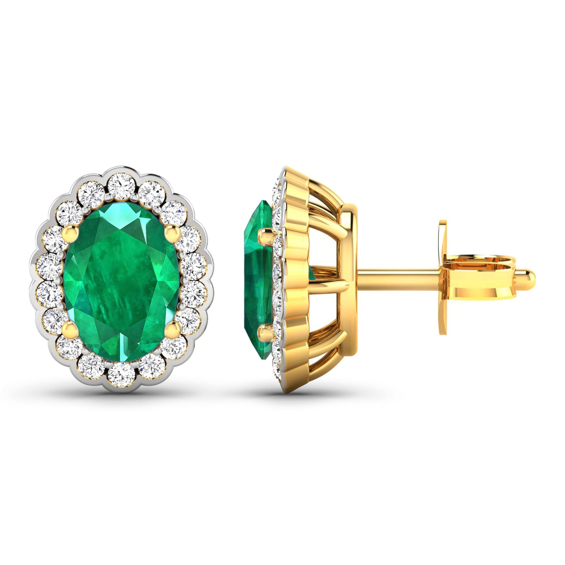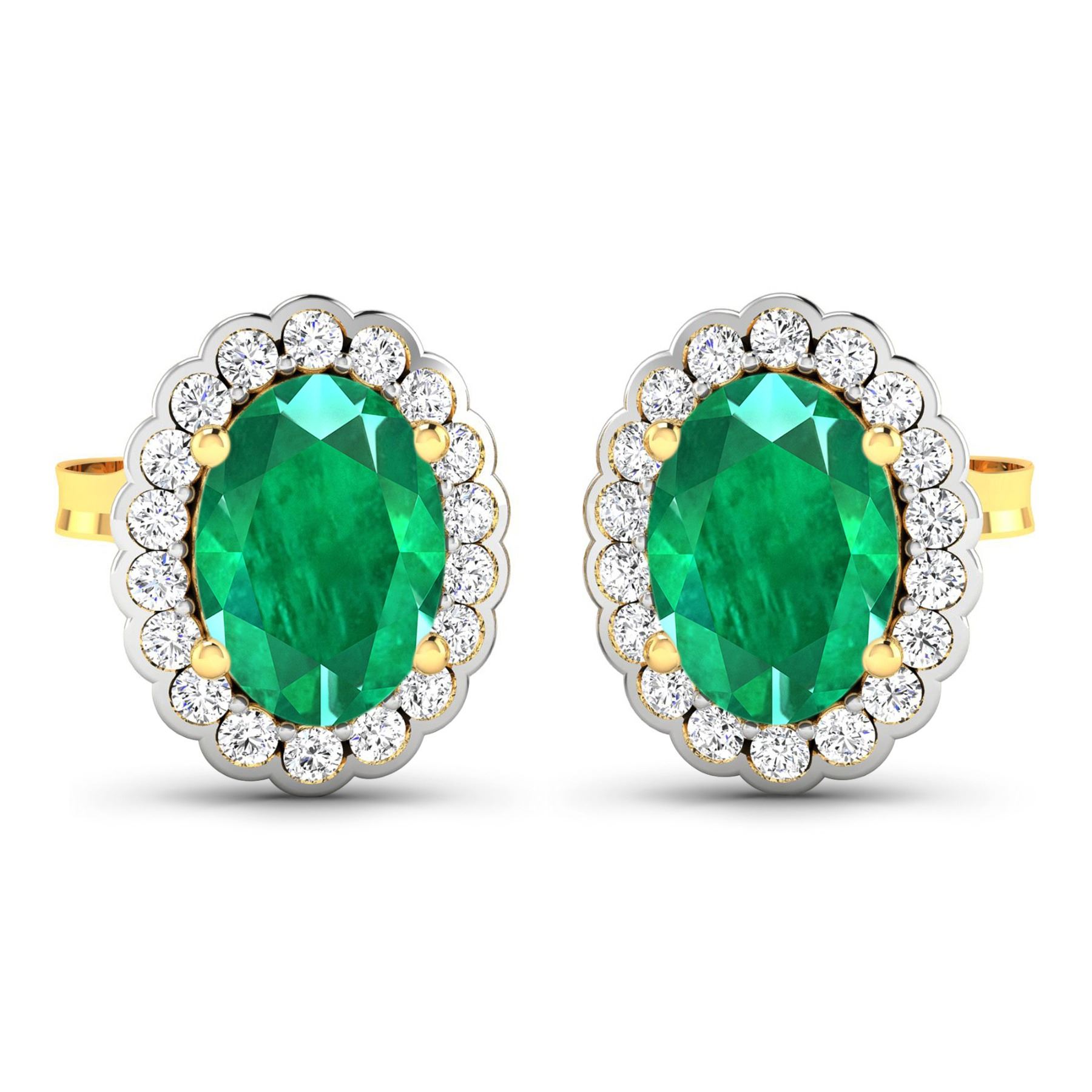 Zambian Emerald (AA) Oval 7x5mm - 2Pcs + White Diamond F/C Round 1.20mm - 36Pcs (I1-I2/I color) ( Push Post ) Total weight of gemstones is 1.12cts. Total Diamond weight is 0.28cts. Total weight of these earrings are 2.49 grams.