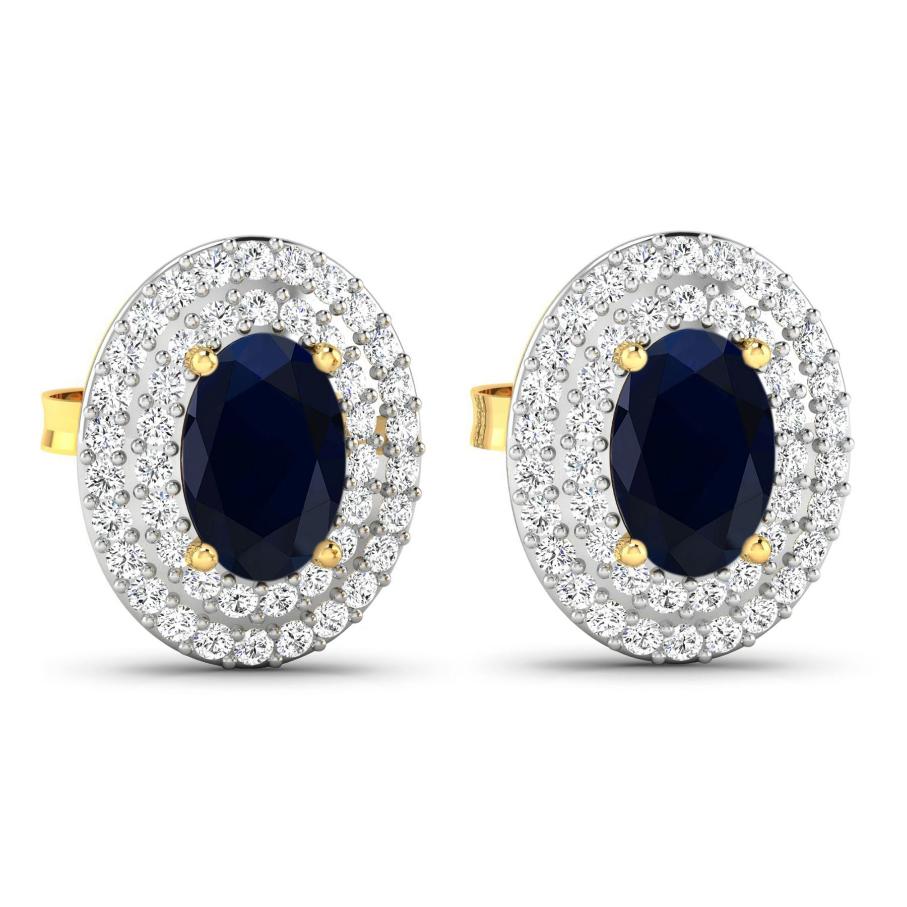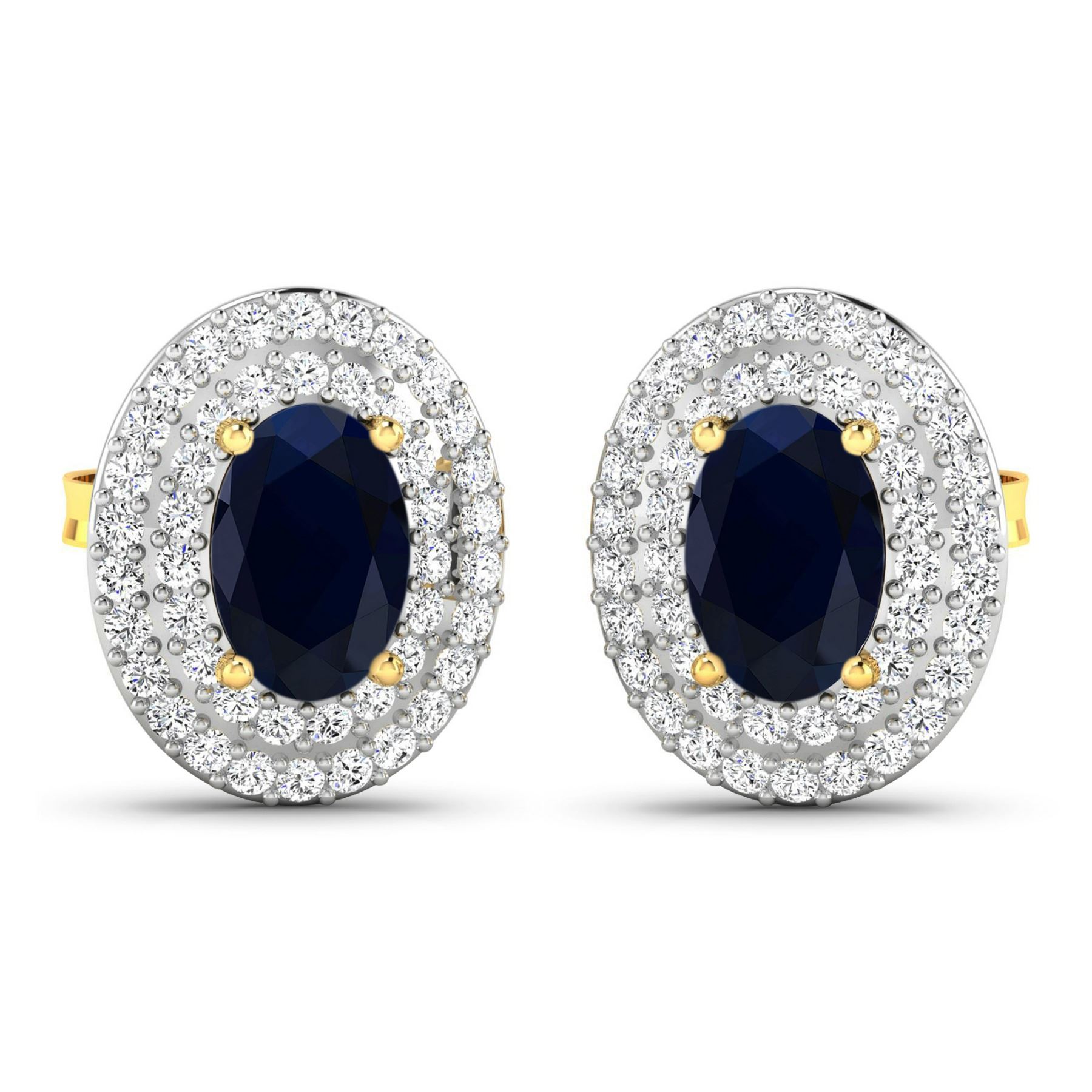 Blue Sapphire (AA) Oval 6x4mm - 2Pcs + White Diamond F/C Round 0.90mm - 90Pcs ( White Pan Rhodium ) (I1-I2/I color) ( Push Post ) Total weight of gemstones is 1.16cts. Total Diamond weight is 0.31cts. Total weight of these earrings are 2.4 grams.