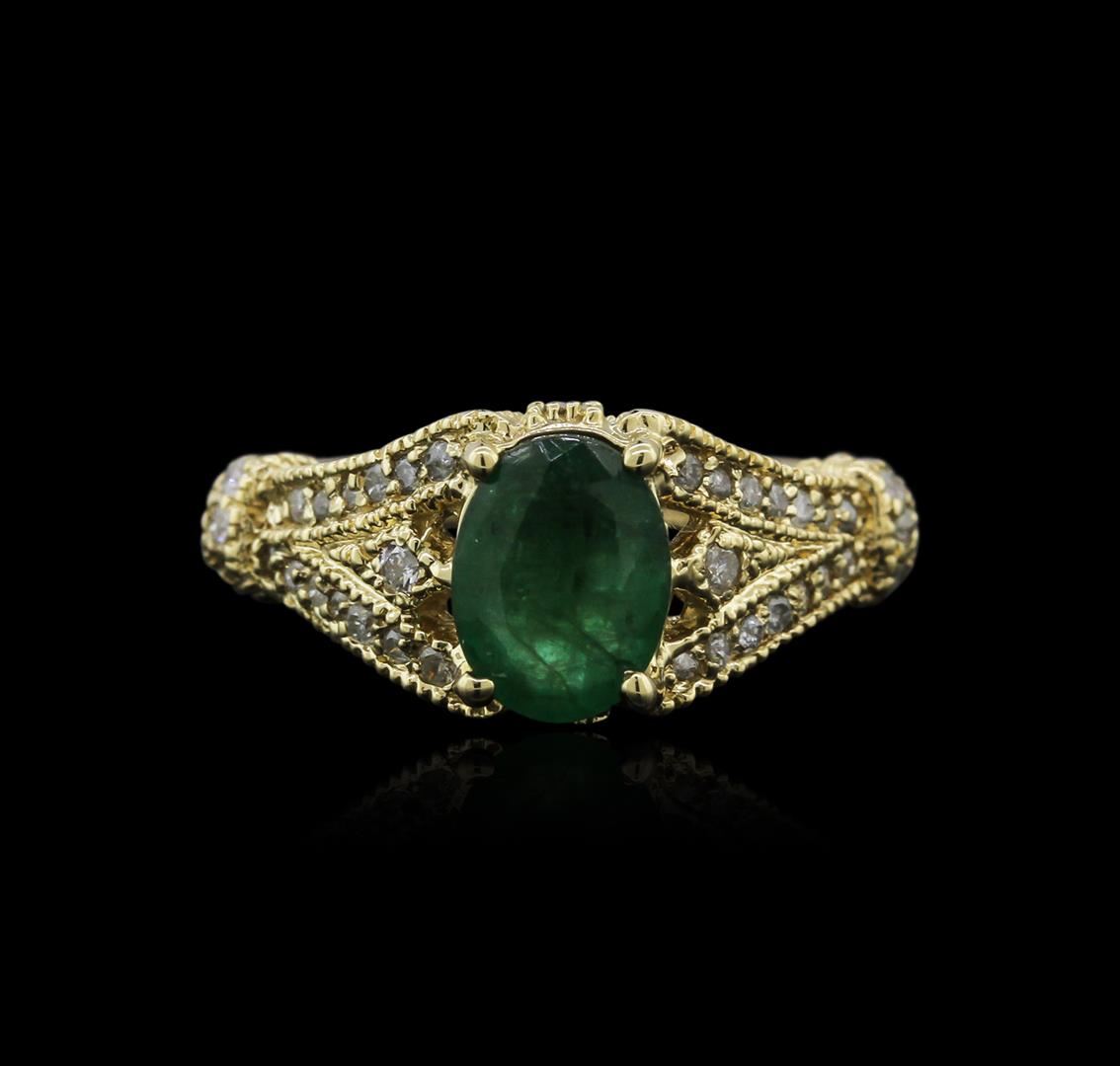 One ring featuring: 14KT yellow gold weighing 4.15 grams containing one emerald center stone with a total weight of 1.19ct and 56 diamonds with a total weight of 0.42ct.