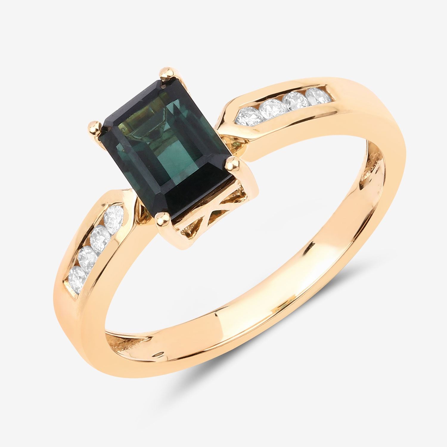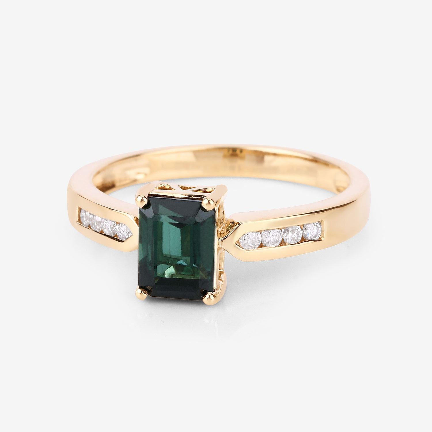 14KT Yellow Gold 1.19ctw Green Tourmaline and White Diamond Ring