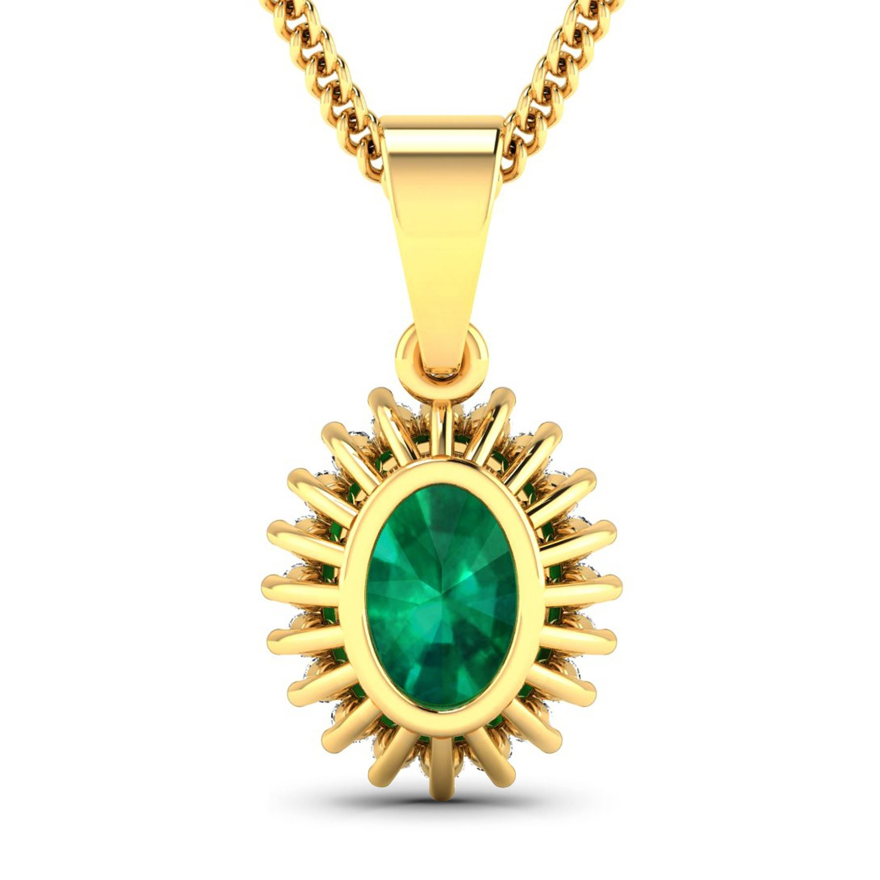 Zambian Emerald (AA) Oval 8x6mm - 1Pc + White Diamond F/C Round 1.10mm - 20Pcs (I1-I2/I color) Total weight of gemstone is 1.1cts. Total Diamond weight is 0.13cts. Total weight of this pendant is 1.71 grams.