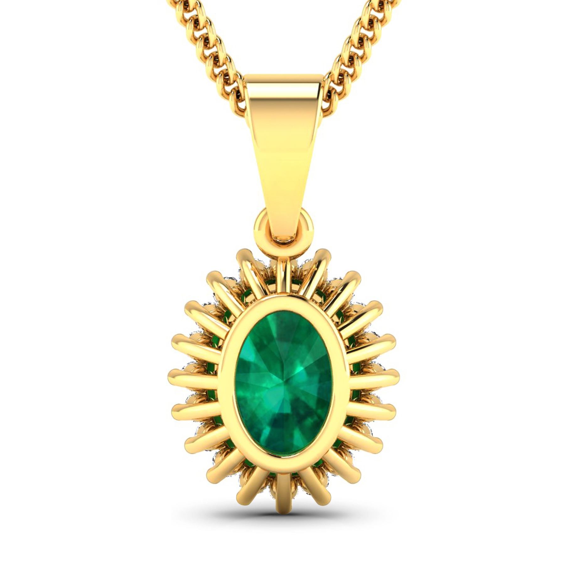 Zambian Emerald (AA) Oval 8x6mm - 1Pc + White Diamond F/C Round 1.10mm - 20Pcs (I1-I2/I color) Total weight of gemstone is 1.1cts. Total Diamond weight is 0.13cts. Total weight of this pendant is 1.71 grams.