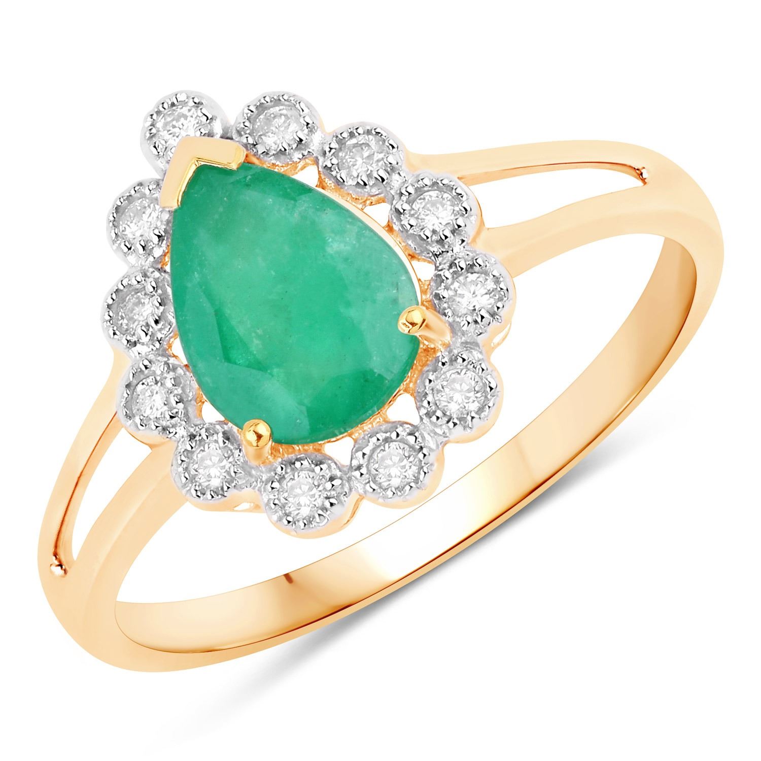 14KT Yellow Gold 1.22ctw Zambian Emerald and White Diamond Ring