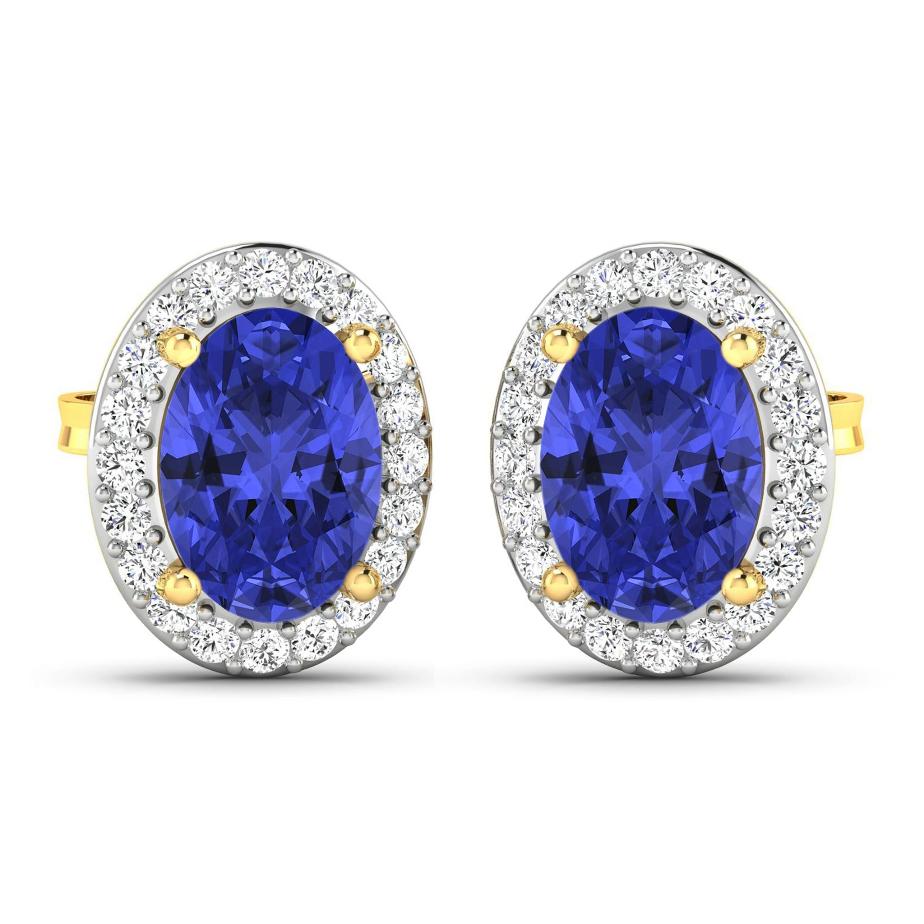 Tanzanite (AA+) Oval 7x5mm - 2Pcs + White Diamond F/C Round 1.10mm - 40Pcs ( I1-I2/I color ) ( Push Post ) Total weight of gemstones is 1.24cts. Total Diamond weight is 0.26cts. Total weight of these earrings are 2.02 grams.