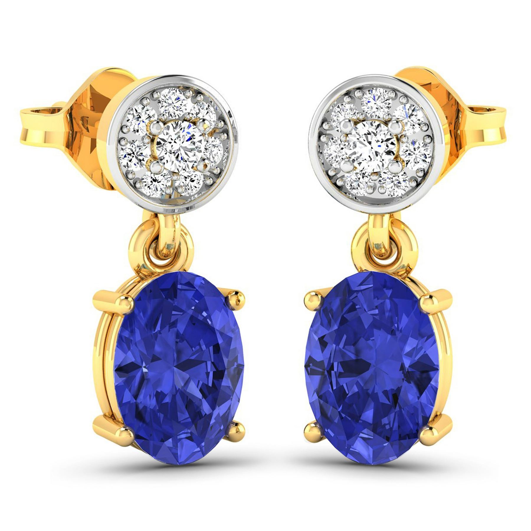 Tanzanite (AA+) Oval 7x5mm - 2Pcs + White Diamond F/C Round 1.80mm - 2Pcs + White Diamond F/C Round 1.00mm - 14Pcs ( Push-Post ) ( White Pan Rhodium ) ( I1-I2/I color ) Total weight of gemstones is 1.24cts. Total Diamond weight is 0.11cts. Total weight of these earrings are 1.99 grams.