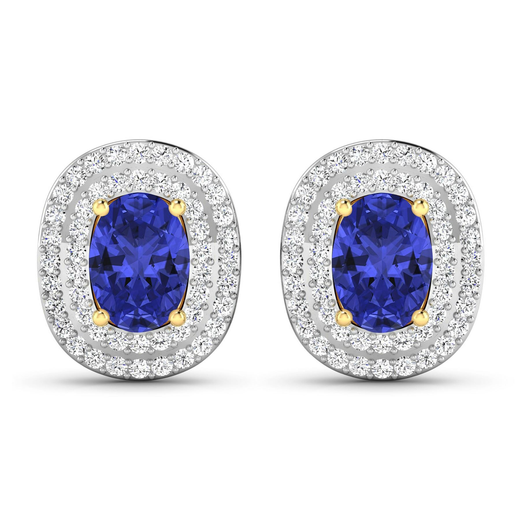 Tanzanite (AA+) Oval 7x5mm - 2Pcs + White Diamond F/C Round 1.00mm - 100Pcs ( I1-I2/I color ) ( Push Post ) Total weight of gemstones is 1.24cts. Total Diamond weight is 0.45cts. Total weight of these earrings are 2.74 grams.