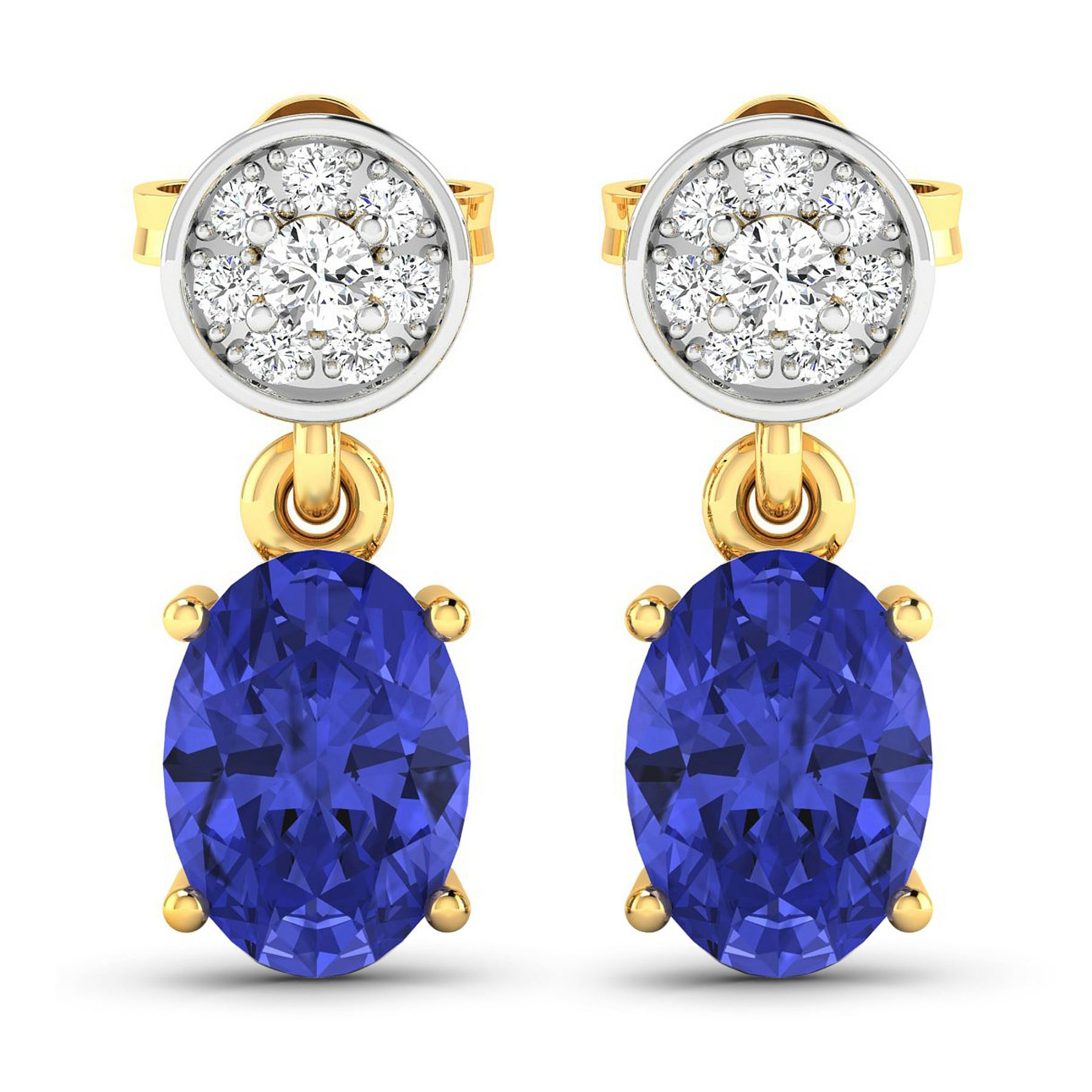 Tanzanite (AA+) Oval 7x5mm - 2Pcs + White Diamond F/C Round 1.80mm - 2Pcs + White Diamond F/C Round 1.00mm - 14Pcs ( Push-Post ) ( White Pan Rhodium ) ( I1-I2/I color ) Total weight of gemstones is 1.24cts. Total Diamond weight is 0.11cts. Total weight of these earrings are 1.99 grams.