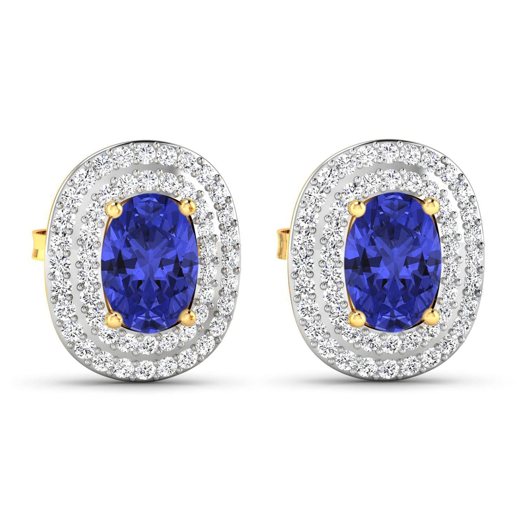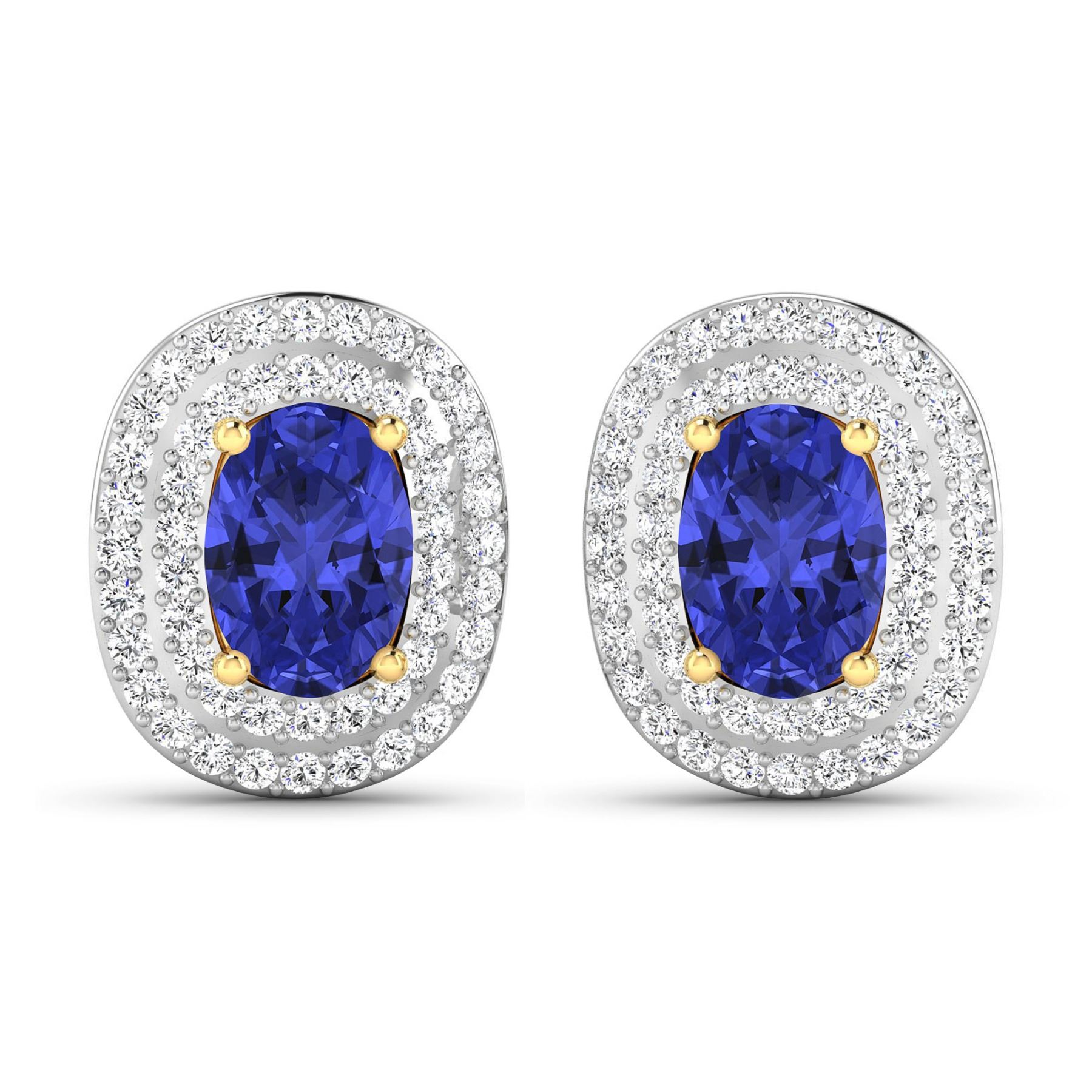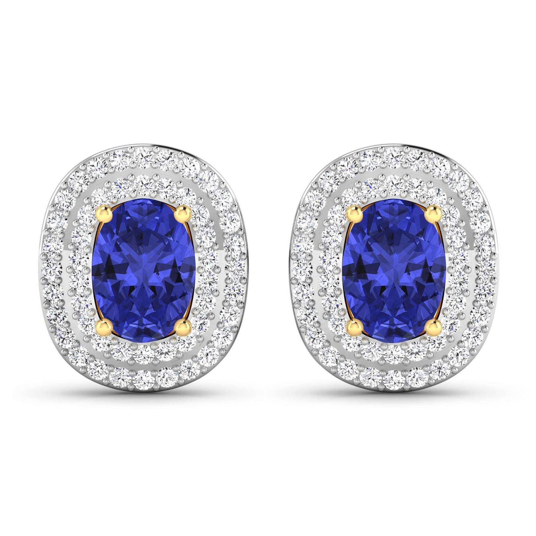Tanzanite (AA+) Oval 7x5mm - 2Pcs + White Diamond F/C Round 1.00mm - 100Pcs ( I1-I2/I color ) ( Push Post ) Total weight of gemstones is 1.24cts. Total Diamond weight is 0.45cts. Total weight of these earrings are 2.74 grams.