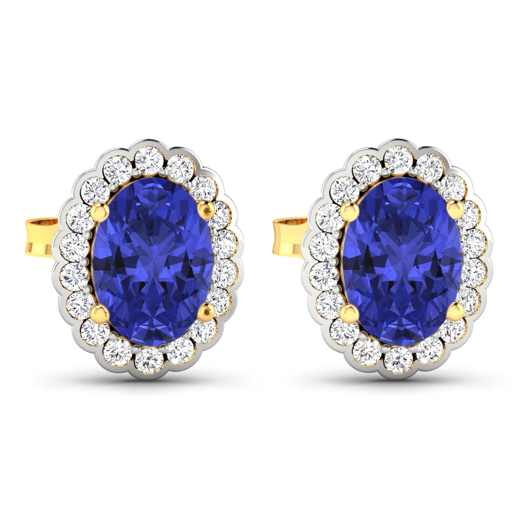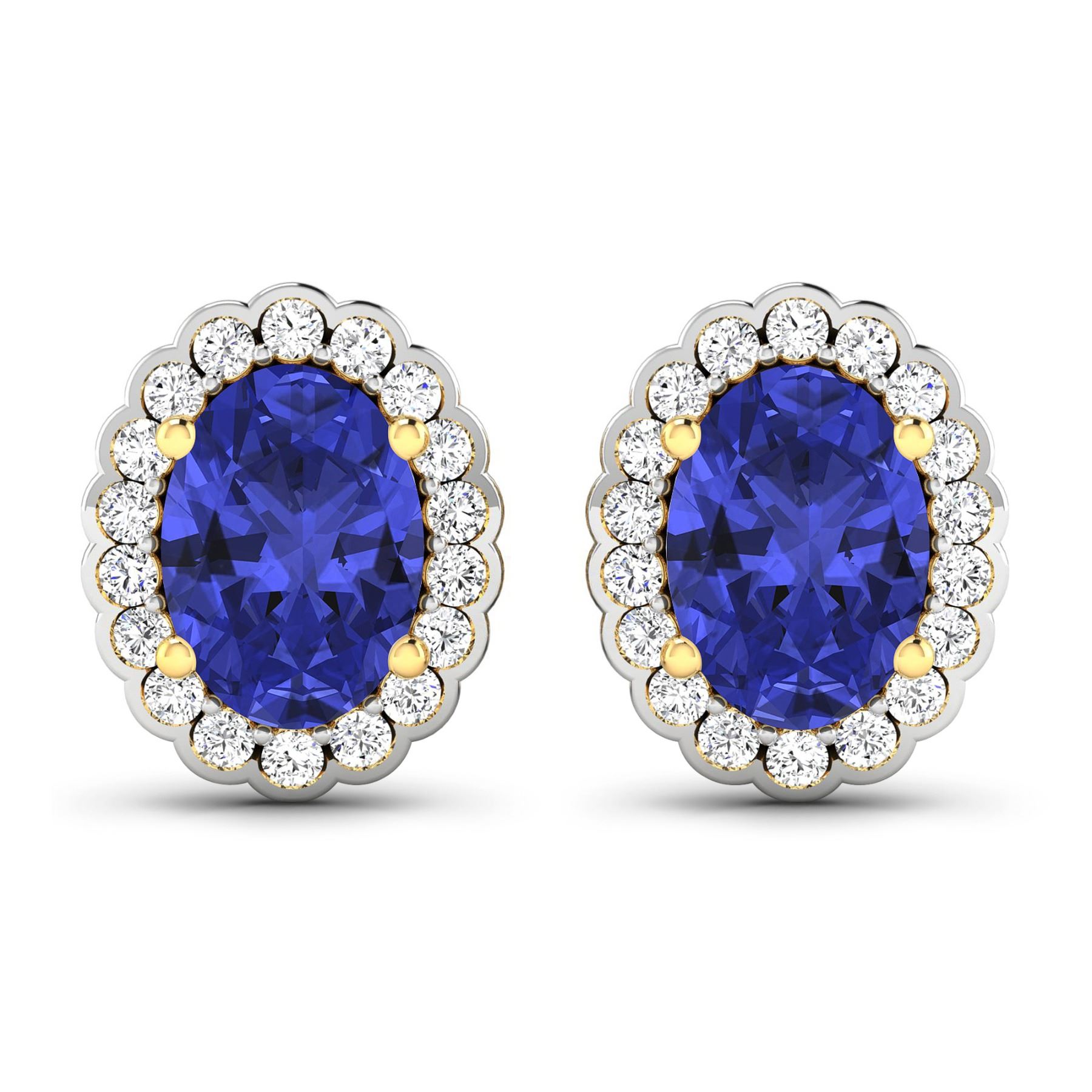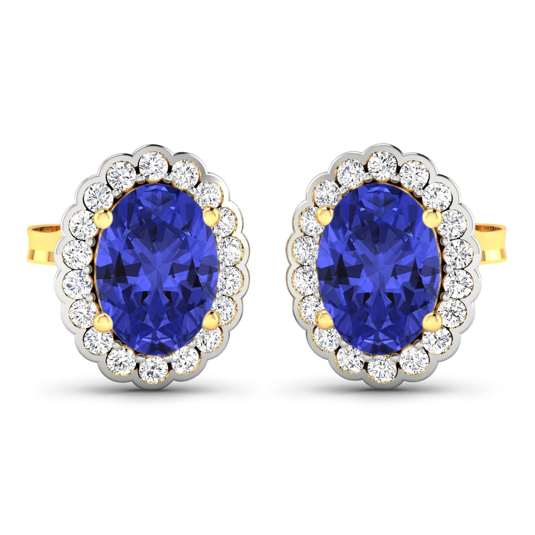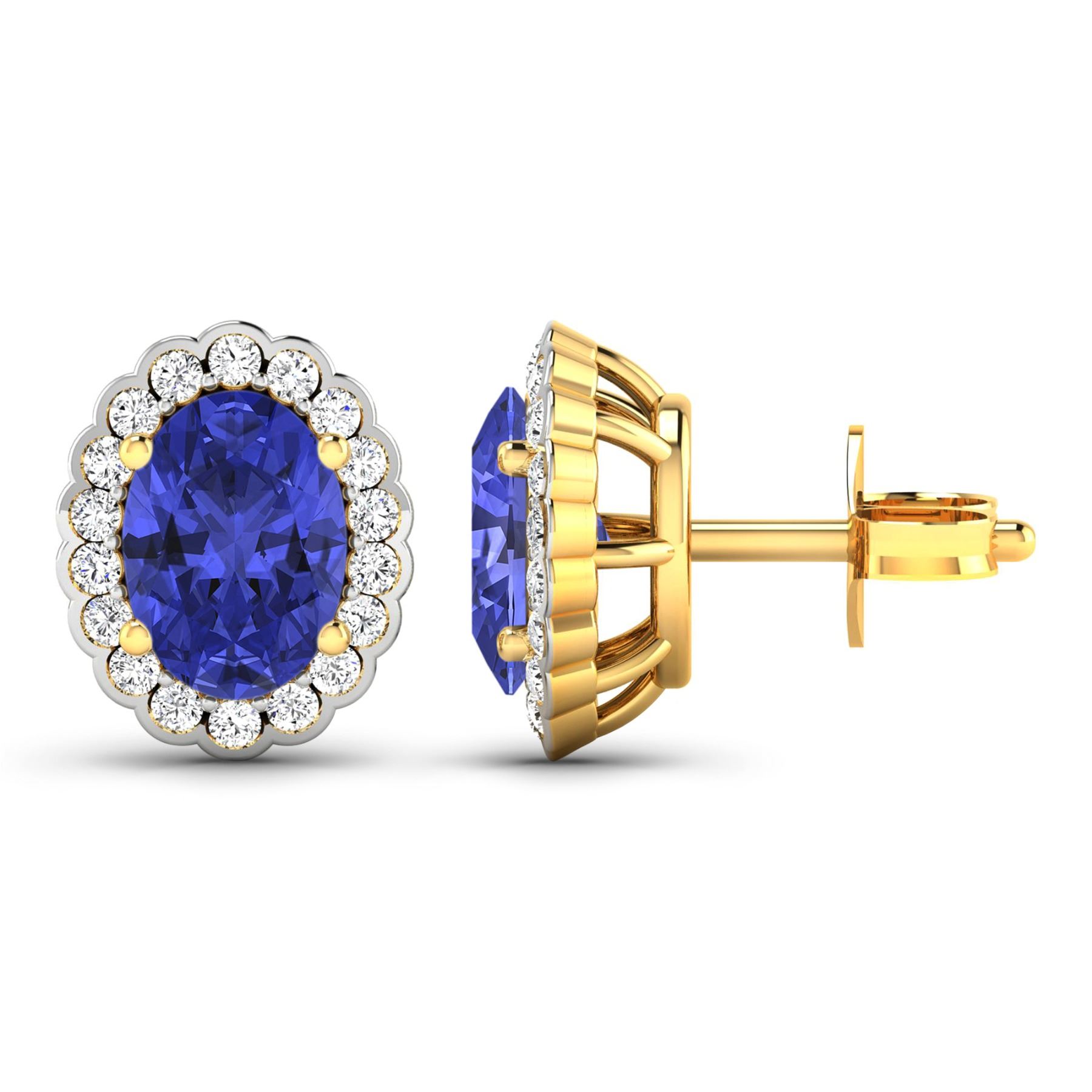 Tanzanite (AA+) Oval 7x5mm - 2Pcs + White Diamond F/C Round 1.20mm - 36Pcs ( I1-I2/I color ) ( Push Post ) Total weight of gemstones is 1.24cts. Total Diamond weight is 0.28cts. Total weight of these earrings are 2.52 grams.