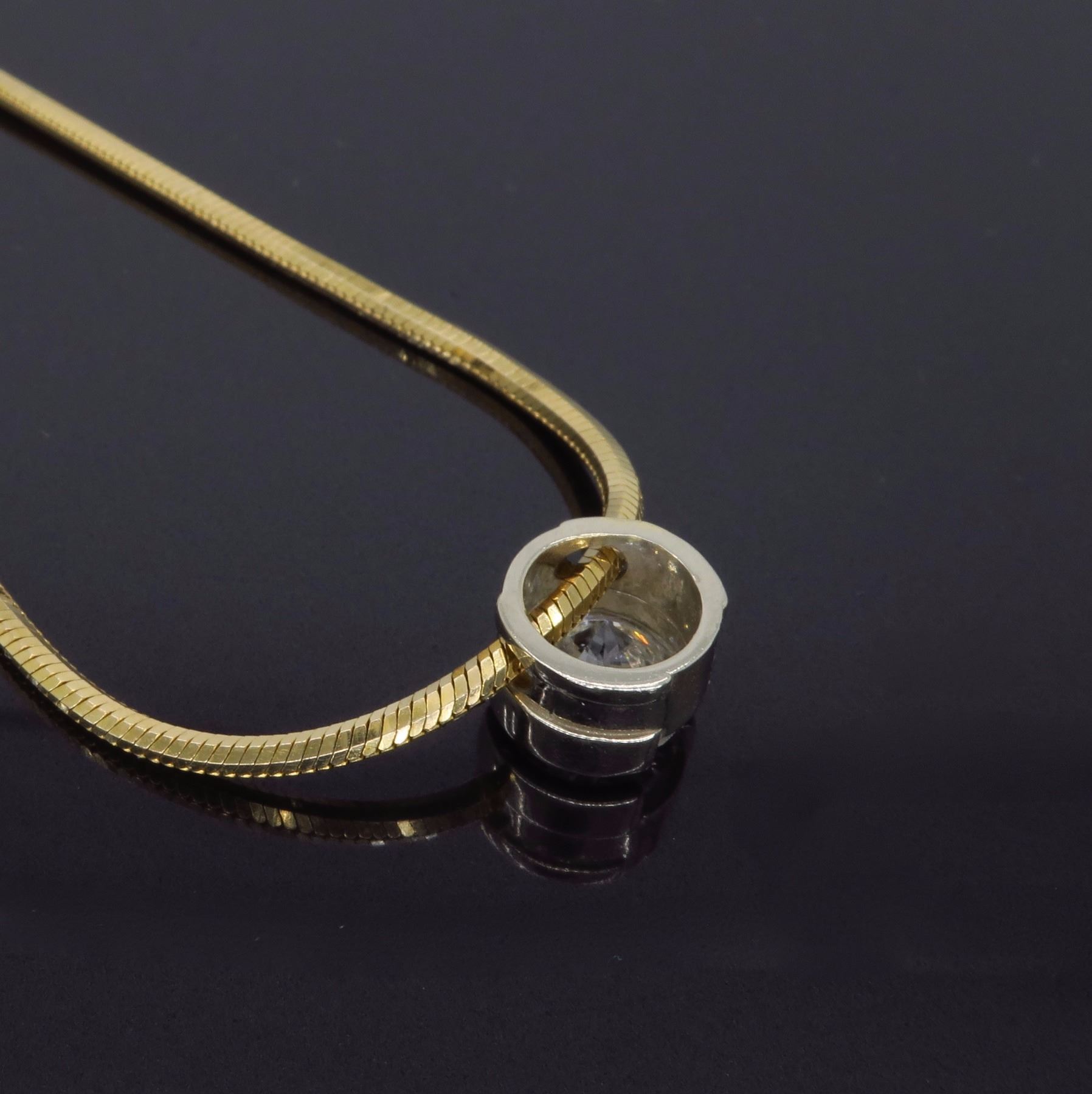 One 14KT Yellow Gold 1.25ct Diamond Pendant with Chain. (1) Round Diamond with a total weight of 1.25cts with a color of G-H and clarity of I-1. Total weight of this pendant with chain is 11.2 grams. Total length of this chain is 18 inches.