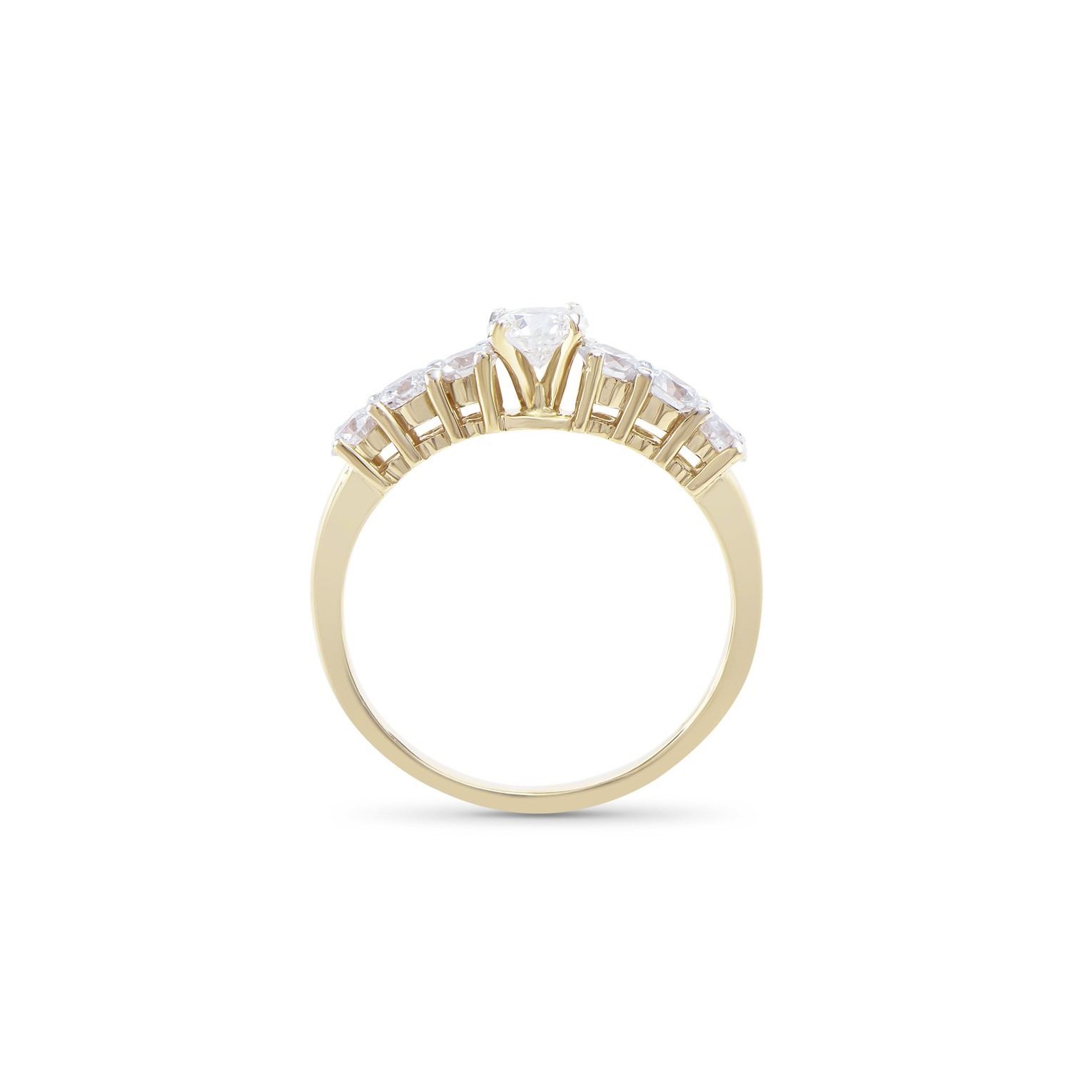 (1) round Diamond with a total weight of 0.45cts with a color of H-I and clarity of I1-I2. (6) round Diamonds with a total weight of 0.80cts with a color of H-I and clarity of I1-I2. Total weight of this ring is 3.0 grams. Ring size is 7.5.