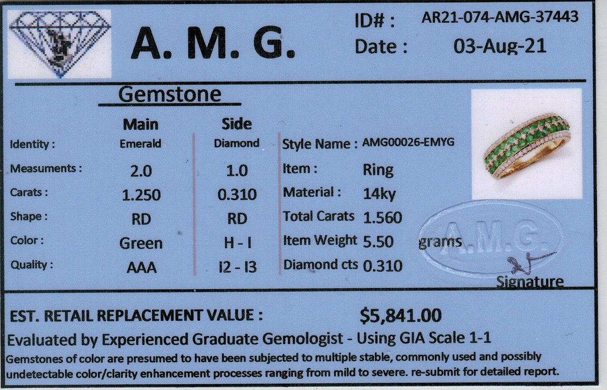 (32) Emeralds with a total weight of 1.25cts. (69) Round Diamonds with a total weight of 0.31cts with a color of H-I and a clarity of I2-I3. Total weight of this ring is 5.50 grams. Ring size is 7.5.