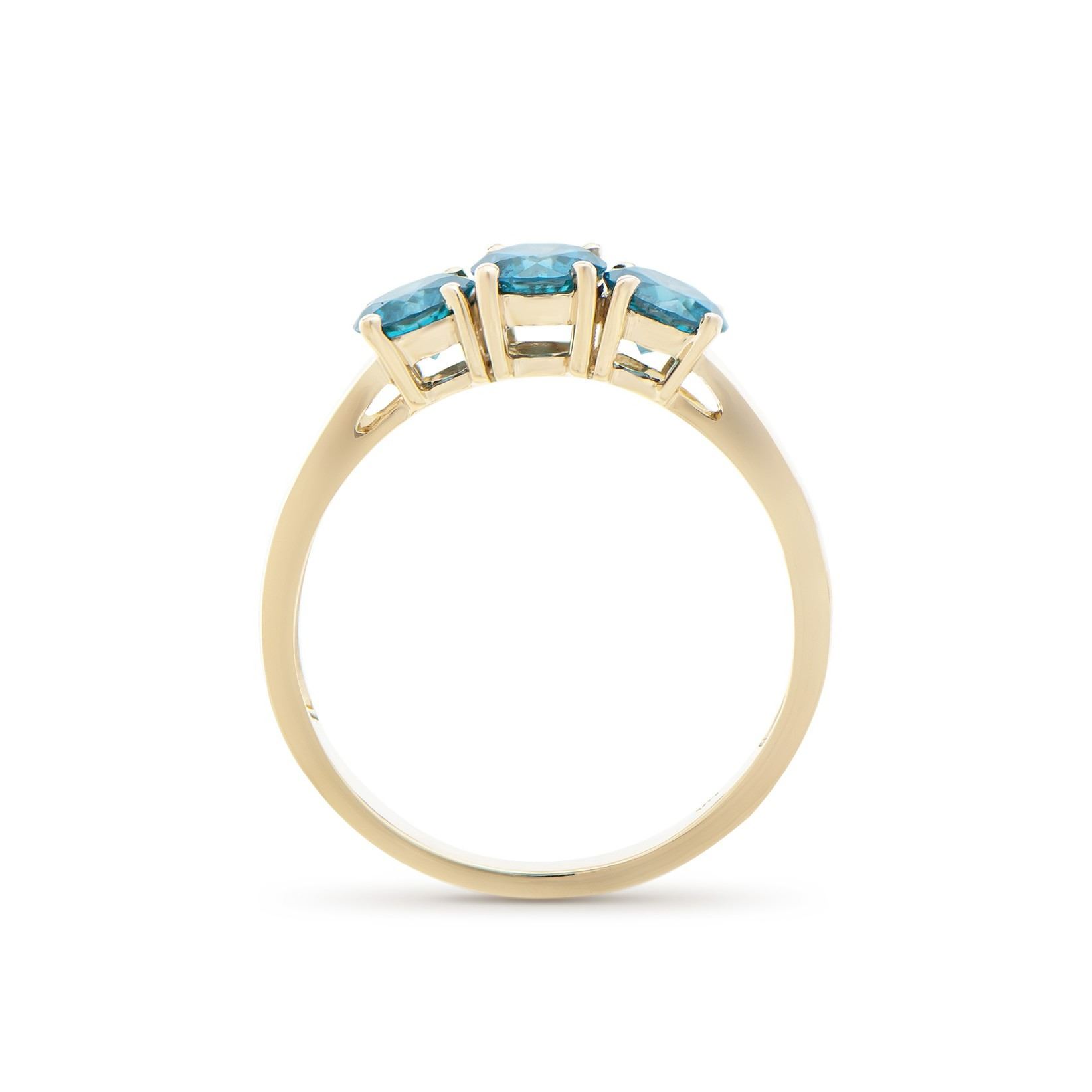 (3) round Dark Blue Diamonds with a total weight of 1.26cts with a color of Dark Blue and clarity of I1-I2. Total weight of this ring is 2.3 grams. Ring size is 7.5.