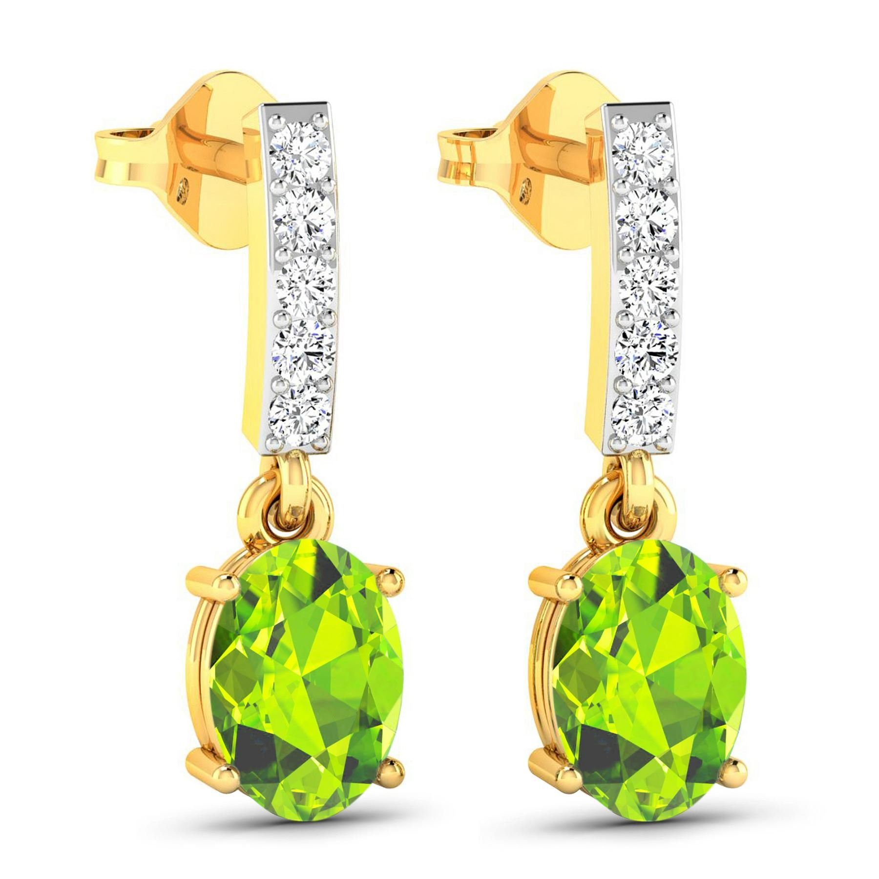 Peridot Oval 7x5mm - 2Pcs + White Diamond F/C Round 1.50mm - 10Pcs ( Push-Post ) ( White Pan Rhodium ) ( I1-I2/I color ) Total weight of gemstones is 1.26cts. Total Diamond weight is 0.14cts. Total weight of these earrings are 1.92 grams.