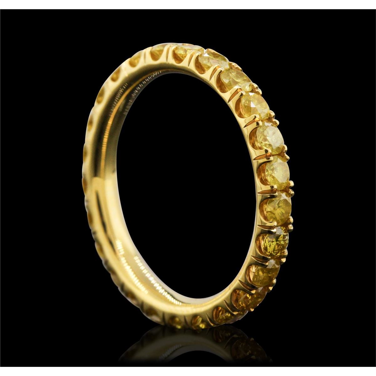 One electronically tested 14KT yellow gold Ladies combination cast & assembled wedding band with a bright polish finish. Condition is very good. Identified with markings of "14K". Containing: Twenty-Five prong set round brilliant cut diamonds, measuring 2.40 - 2.40 x 1.44mm (depth est.) approximate. Total Weight of 25 Stones = 1.27ct. Clarity: I-1 to I-2, Cut is Good. Color of the diamonds has been enhanced. All diamonds are graded in the mounting, unless otherwise stated. Total Weight of Diamonds 1.27ct. Total Weight of Wedding Band 2.30 grams.. GGL Appraised at $5,860.00.