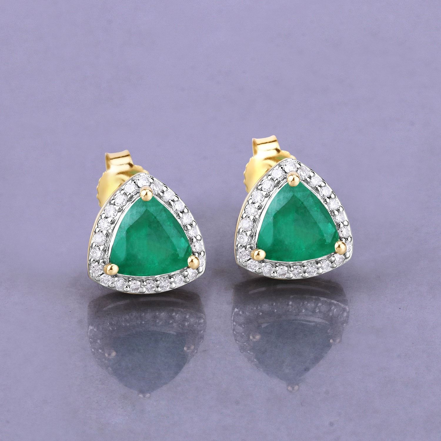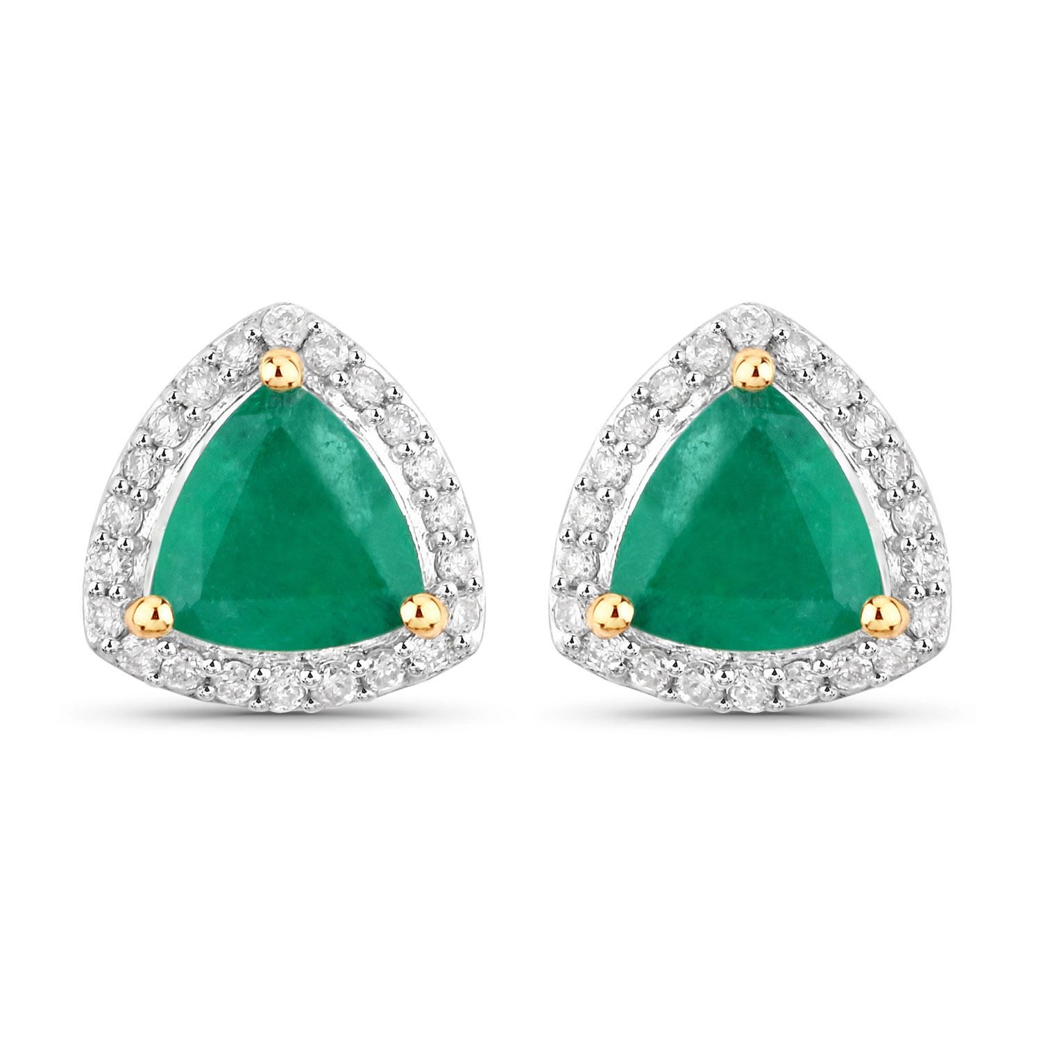 14KT Yellow Gold 1.27ctw Zambian Emerald and White Diamond Earrings