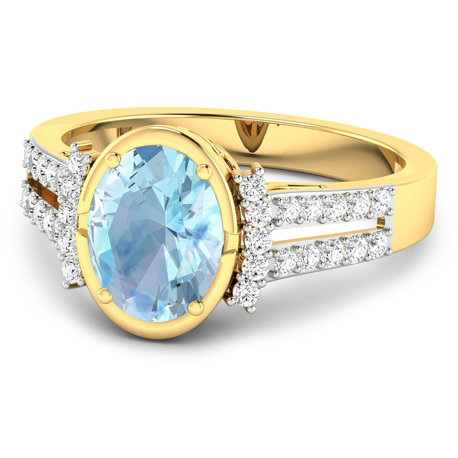 Aquamarine (AA+) Oval 9x7mm - 1Pc + White Diamond F/C Round 1.30mm - 30Pcs ( White Pan Rhodium ) ( SI-2/HI ) Total weight of gemstone is 1.28cts. Total Diamond weight is 0.3cts. Total weight of this ring is 3.25 grams. Ring size 7.