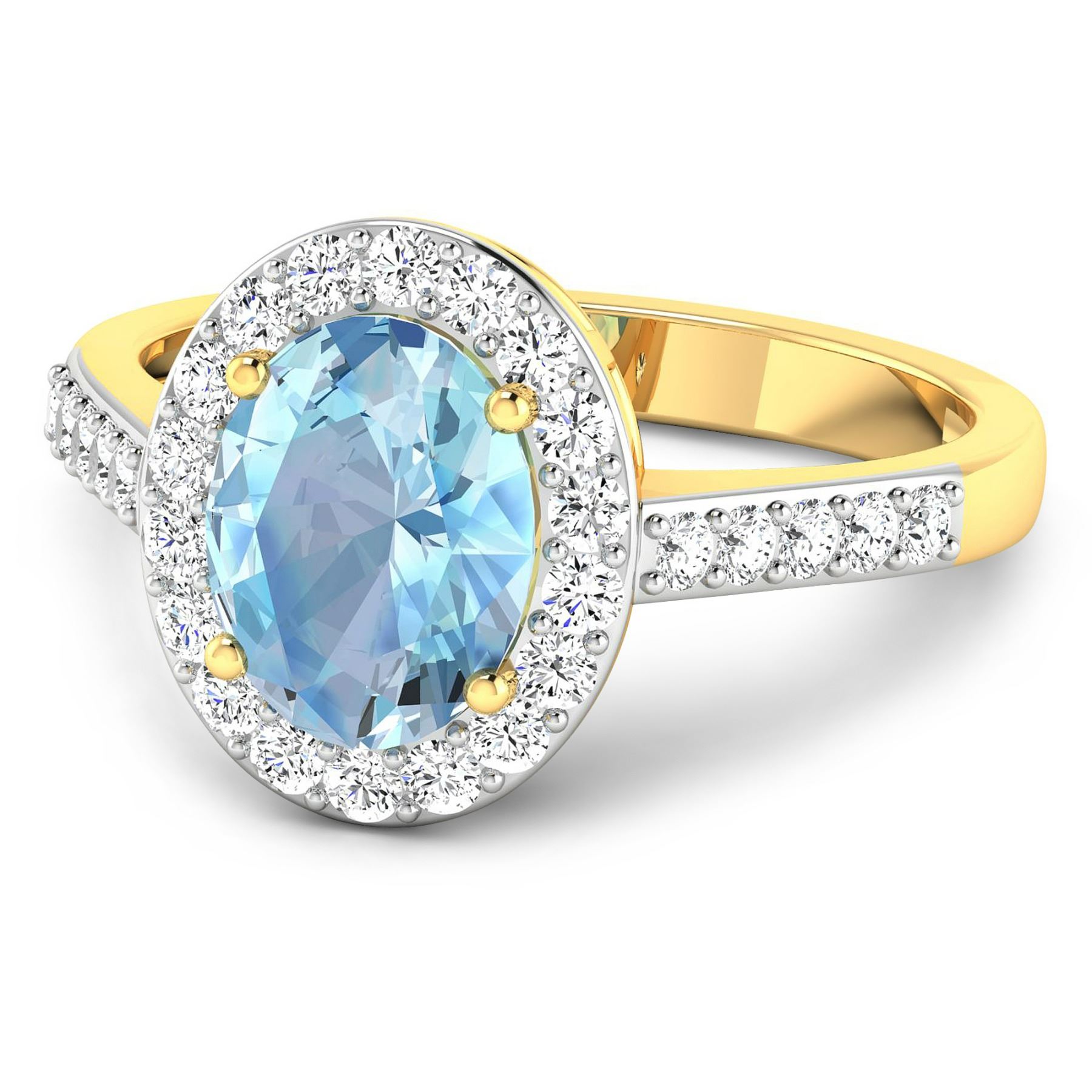 Aquamarine (AA+) Oval 9x7mm - 1Pc + White Diamond F/C Round 1.50mm - 28Pcs ( White Pan Rhodium ) ( SI-2/HI ) Total weight of gemstone is 1.28cts. Total Diamond weight is 0.39cts. Total weight of this ring is 2.69 grams. Ring size 7.