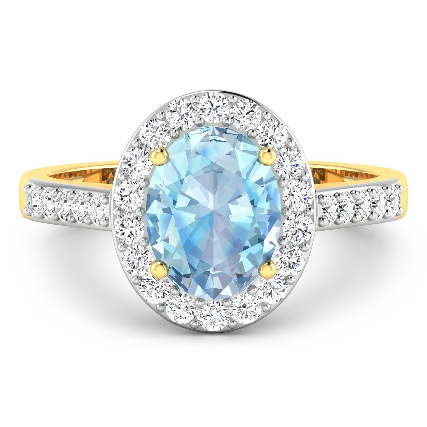 Aquamarine (AA+) Oval 9x7mm - 1Pc + White Diamond F/C Round 1.50mm - 28Pcs ( White Pan Rhodium ) ( SI-2/HI ) Total weight of gemstone is 1.28cts. Total Diamond weight is 0.39cts. Total weight of this ring is 2.69 grams. Ring size 7.