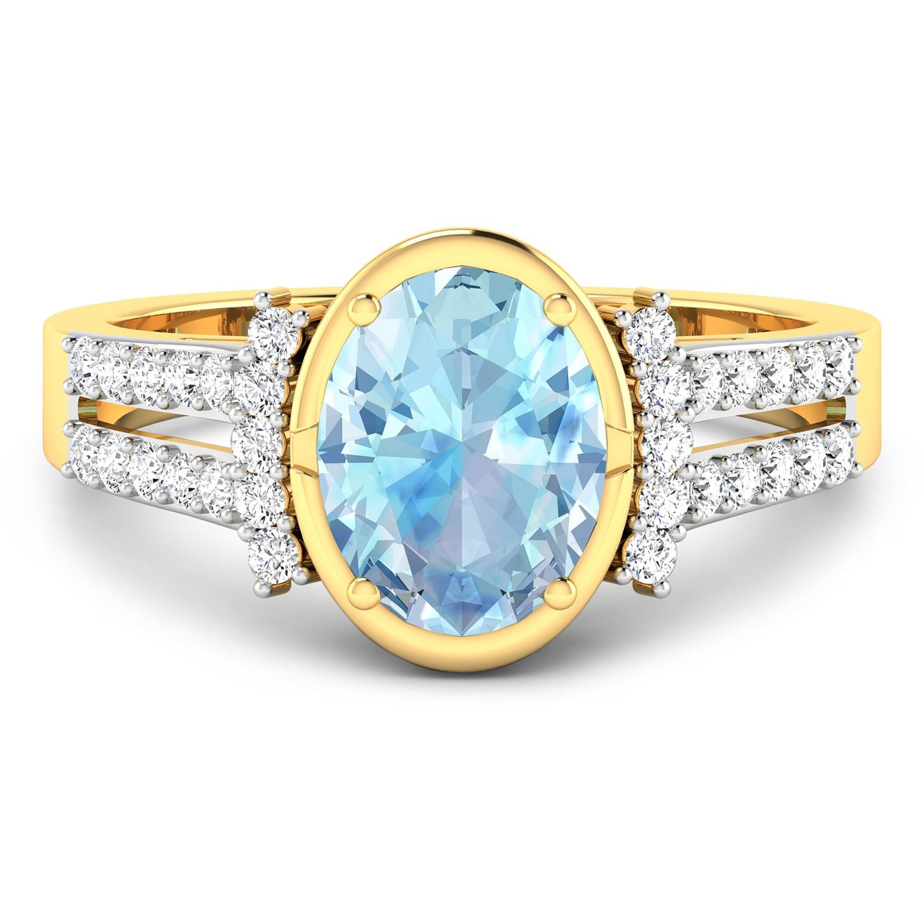 Aquamarine (AA+) Oval 9x7mm - 1Pc + White Diamond F/C Round 1.30mm - 30Pcs ( White Pan Rhodium ) ( SI-2/HI ) Total weight of gemstone is 1.28cts. Total Diamond weight is 0.3cts. Total weight of this ring is 3.25 grams. Ring size 7.