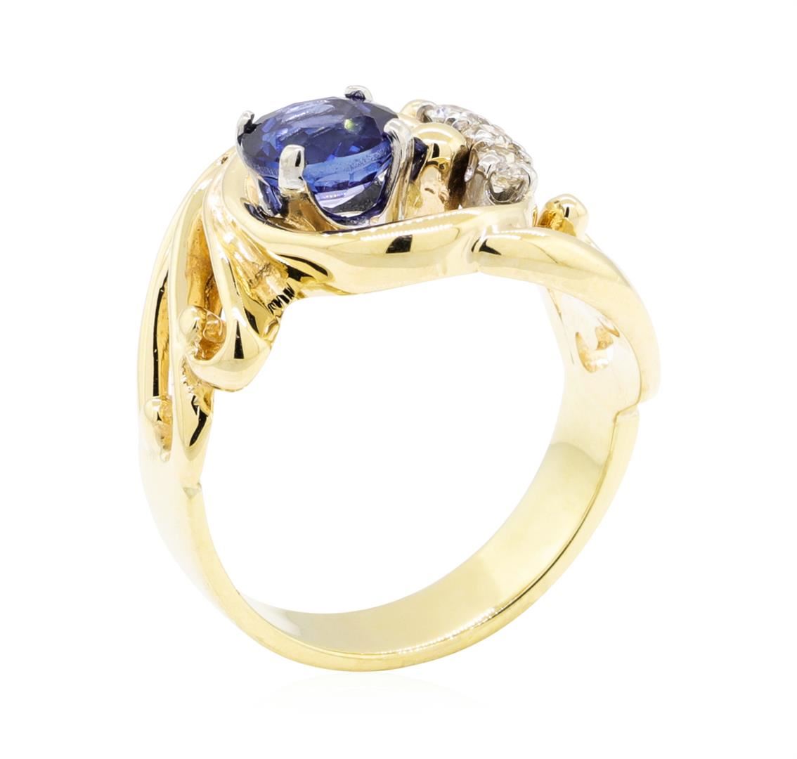 One ring featuring: 14KT yellow gold weighing 7.2 grams containing one sapphire weighing 1.29ct and diamonds weighing 0.15ctw. The ring is a size 6.5.