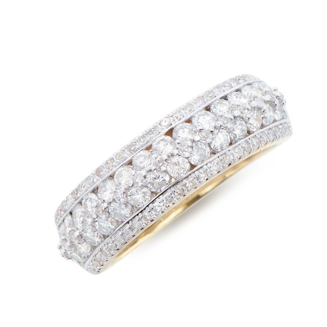 (32) Round Diamonds with a total weight of 1.00cts with a color of H-I and clarity of I1-I2. (69) Round Diamonds with a total weight of 0.32cts with a color of H-I and clarity of I1-I2.Total weight of this ring is 5.30 grams. Ring size is 7.5.