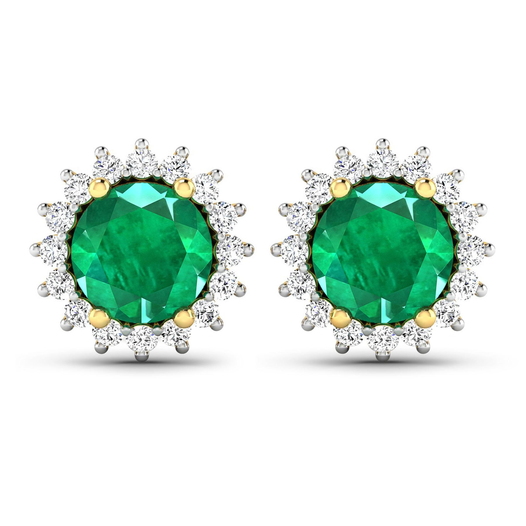 14KT Yellow Gold 1.36ctw Zambian Emerald and Diamond Earrings