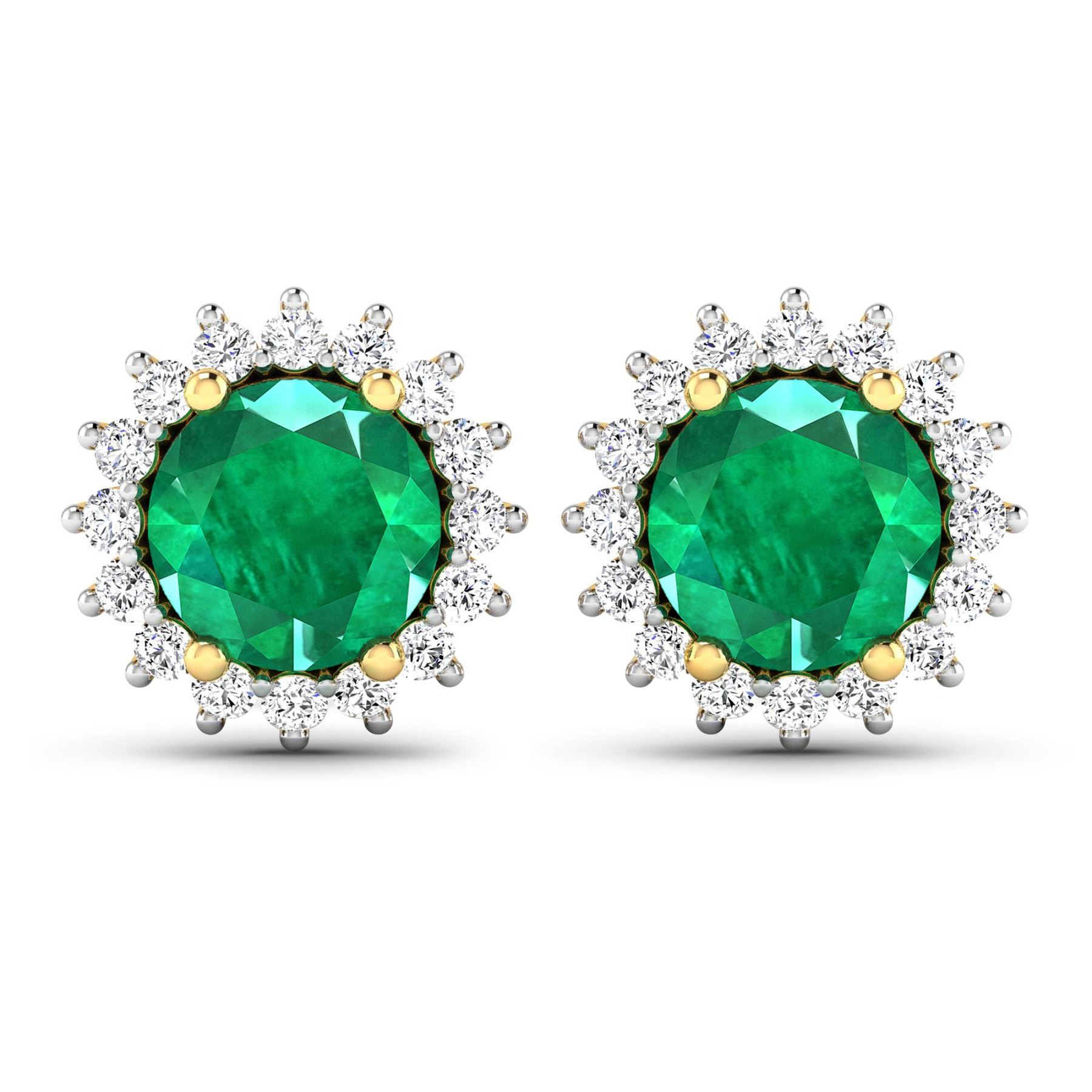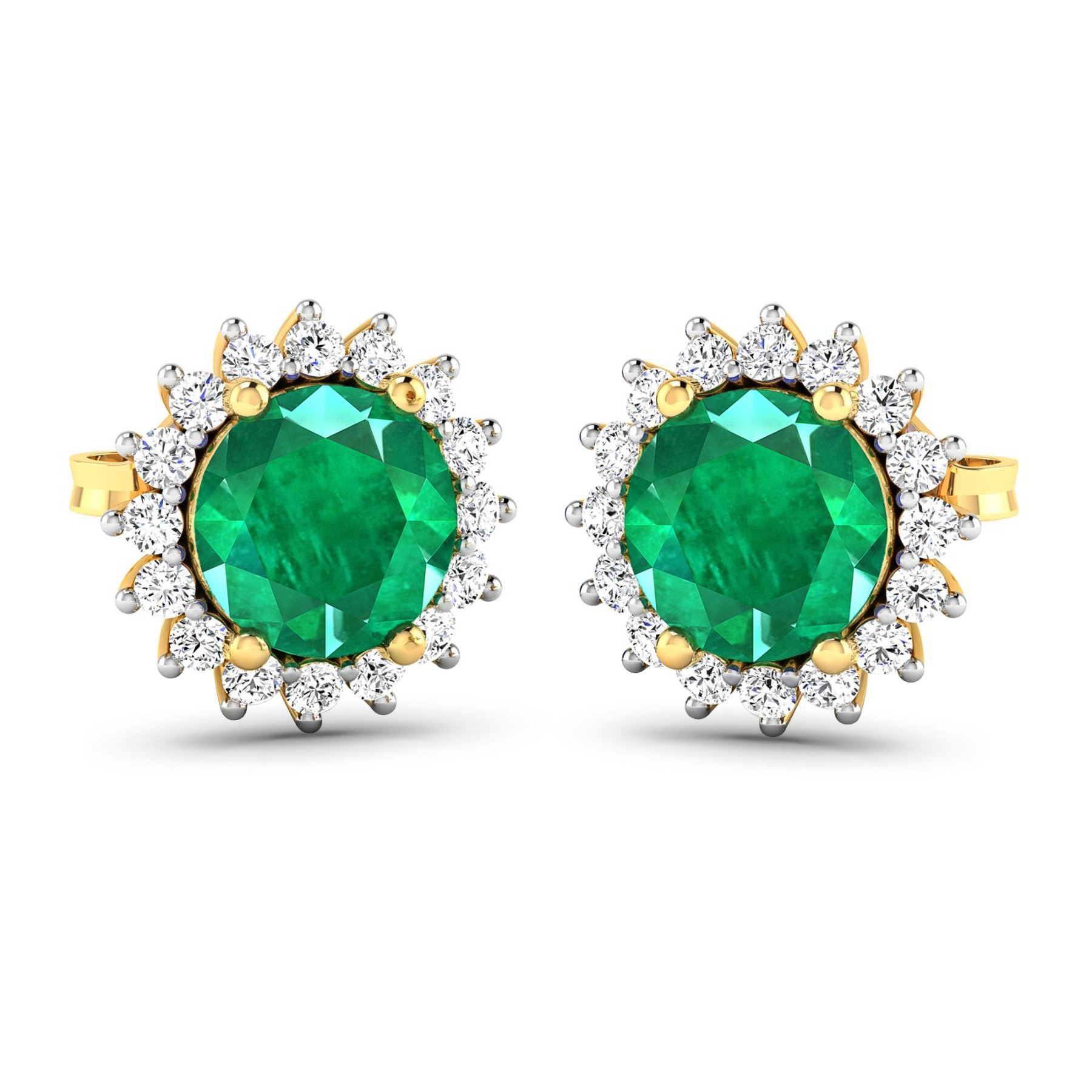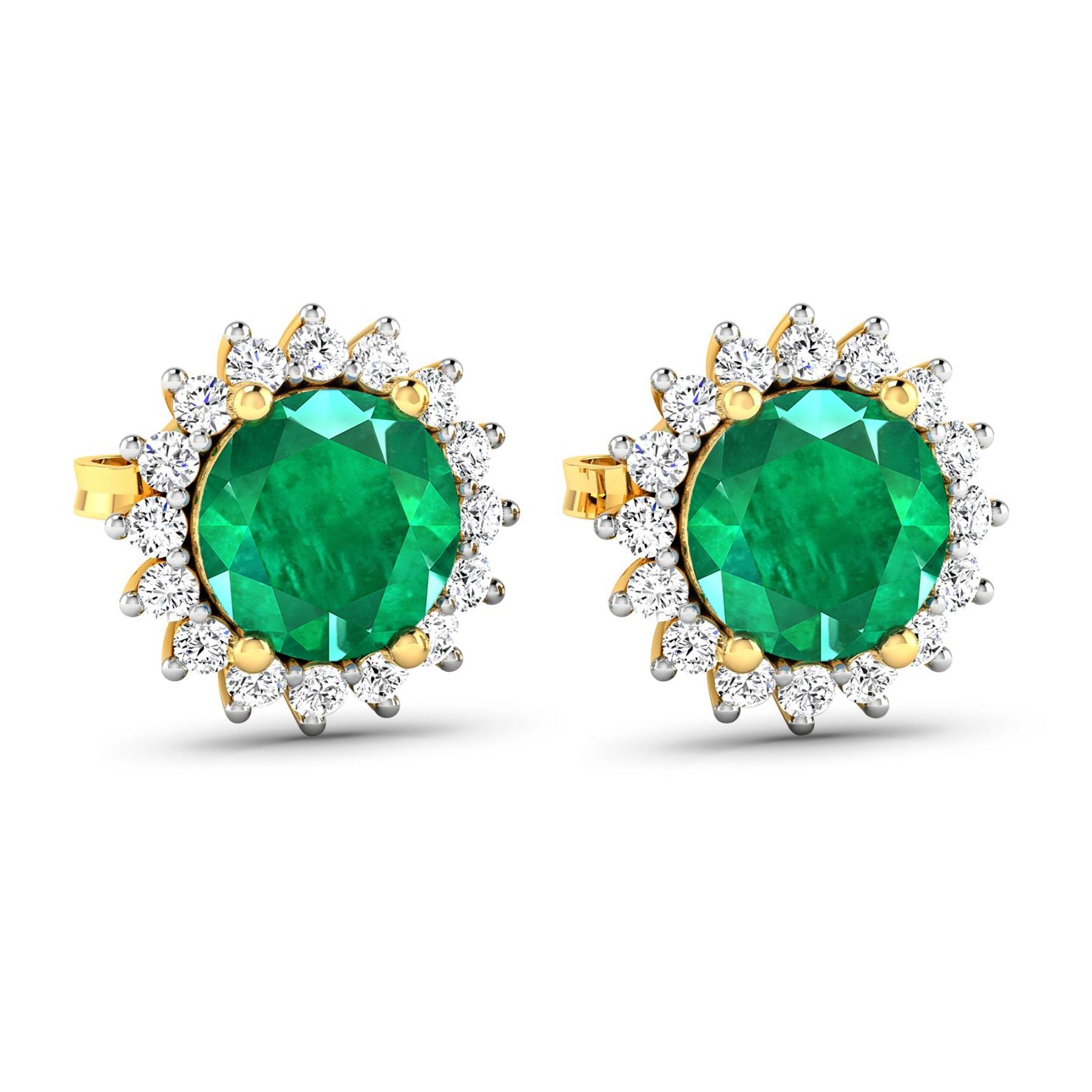 Zambian Emerald (AA) Round 6.00mm - 2Pcs + White Diamond F/C Round 1.30mm - 32Pcs ( Push-Post ) ( White Pan Rhodium ) ( I1-I2/I color ) Total weight of gemstones is 1.36cts. Total Diamond weight is 0.32cts. Total weight of these earrings are 2.15 grams.